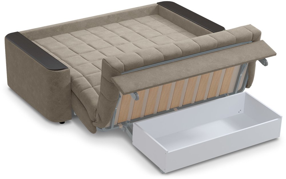 Хороший универсальный диван, средний по удобству для сидения, но хороший для сна. Идеальное решение для гостевой комнаты.