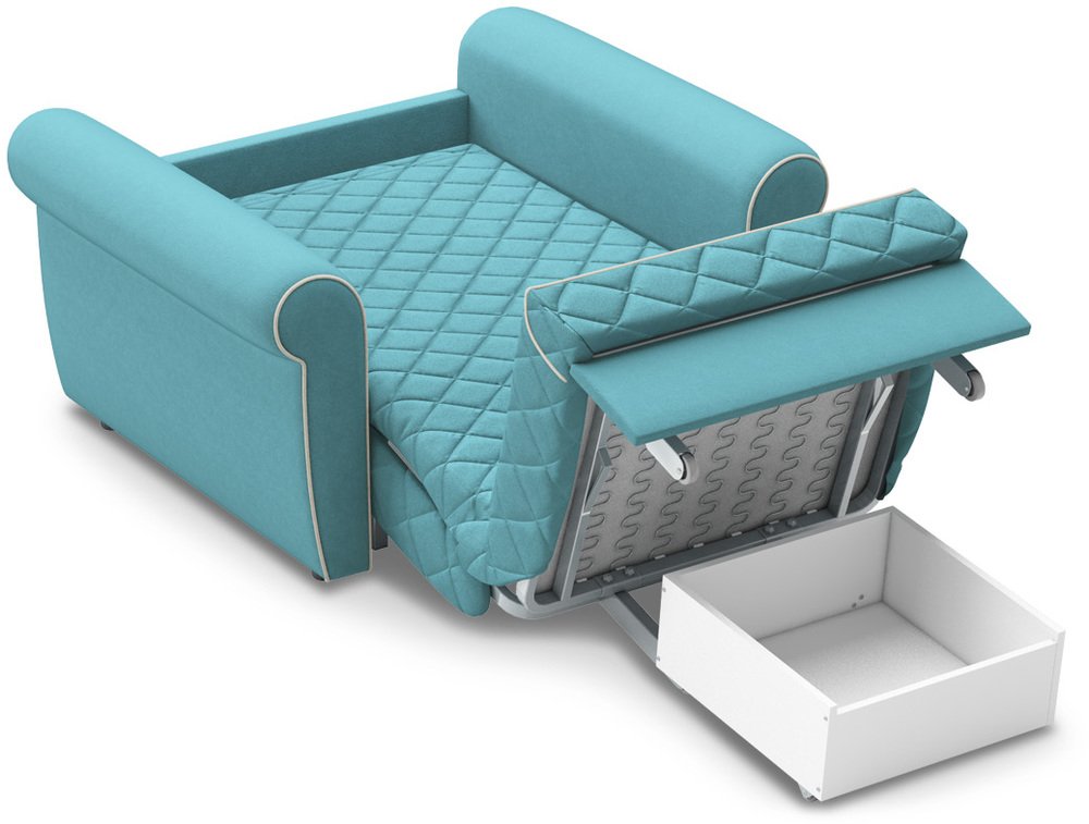 Великолепное кресло, цвет бирюзовый очень приятный, освежающий интерьер! Раскладывающийся механизм удобный, лёгкий, комфортно использовать для сна. Настоятельно рекомендую эту модель!