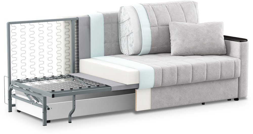 Механизм трансформации «Пантограф» подходит для ежедневного использования. Позволяет легко раскладывать и складывать диван, обеспечивая минимальный контакт дополнительных опор с напольным покрытием.