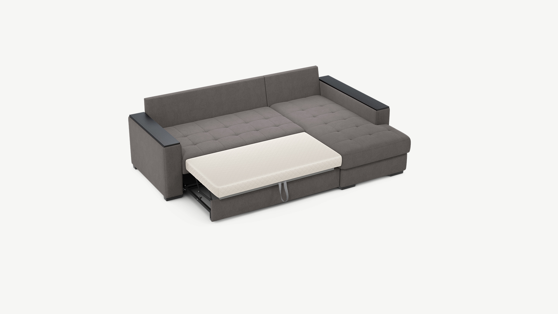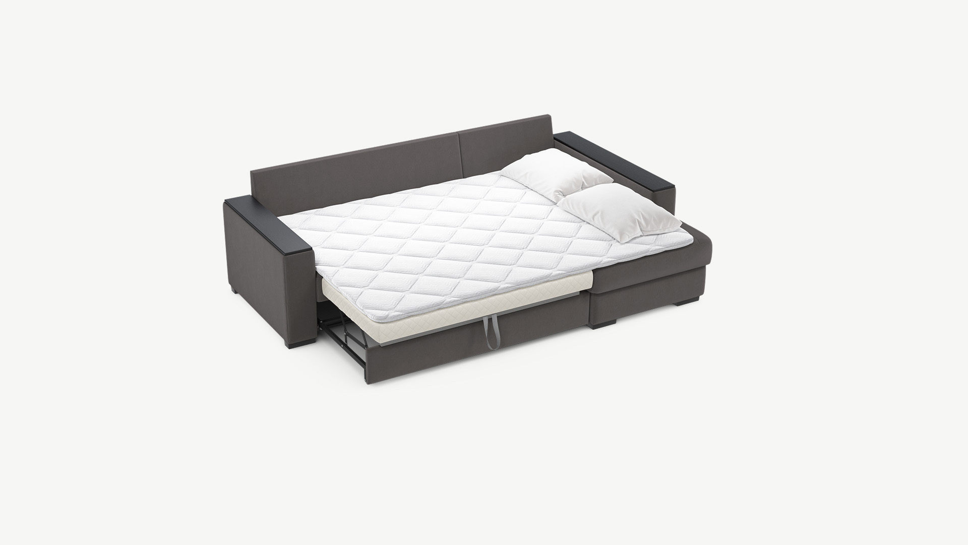 Механизм трансформации «Дельфин» подходит для ежедневного использования. Выкатная секция выполнена в специальной технической ткани, поэтому даже в разобранном виде диван выглядит эстетично и аккуратно.