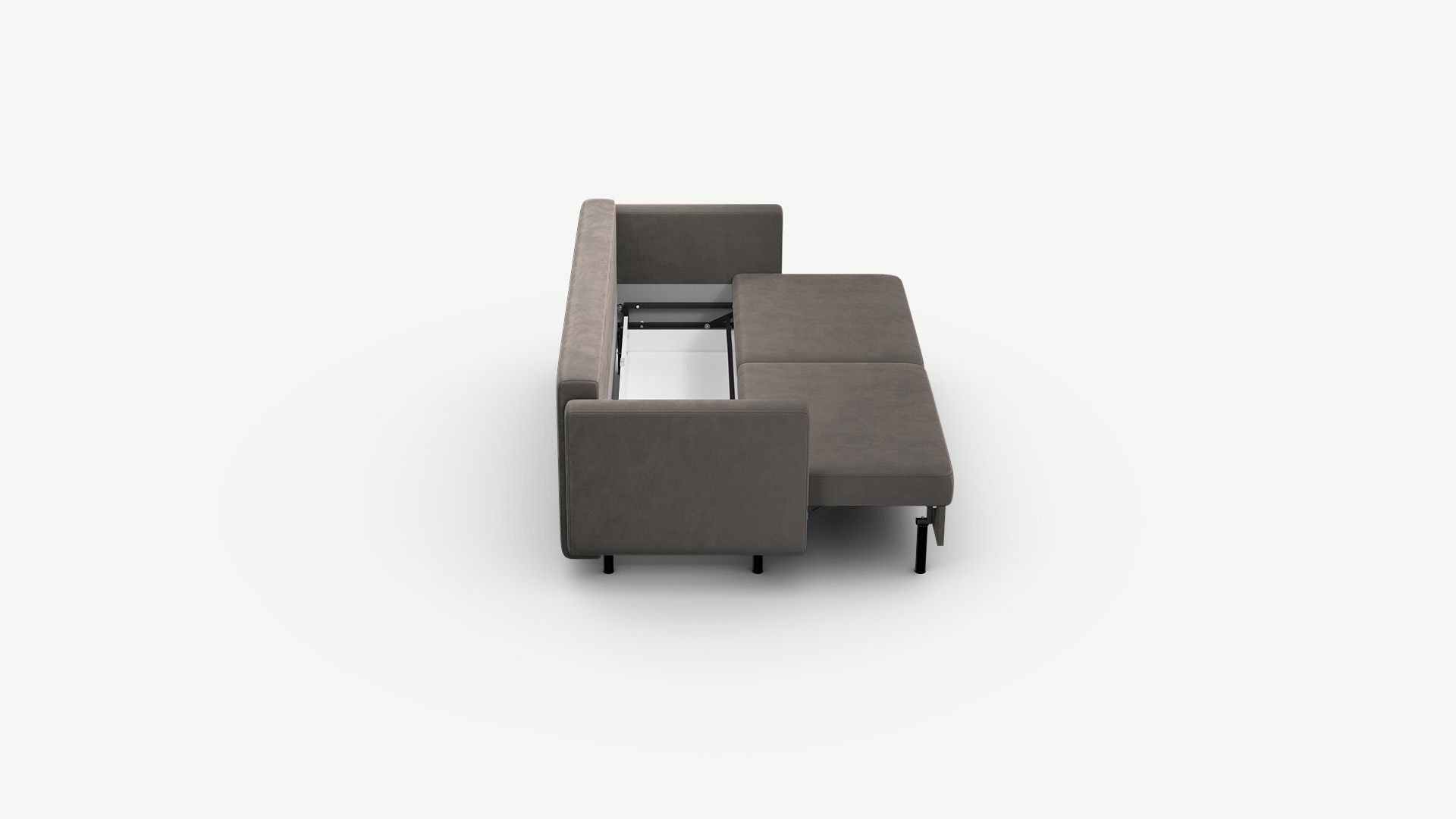 Механизм трансформации «Пантограф» подходит для ежедневного использования. Диван легко раскладывается и складывается, не повреждая напольное покрытие. Диван стоит на четырех основных опорах, в то время как дополнительные остаются скрытыми, появляясь плавно и бесшумно в единственно нужный момент — при трансформации дивана в кровать.