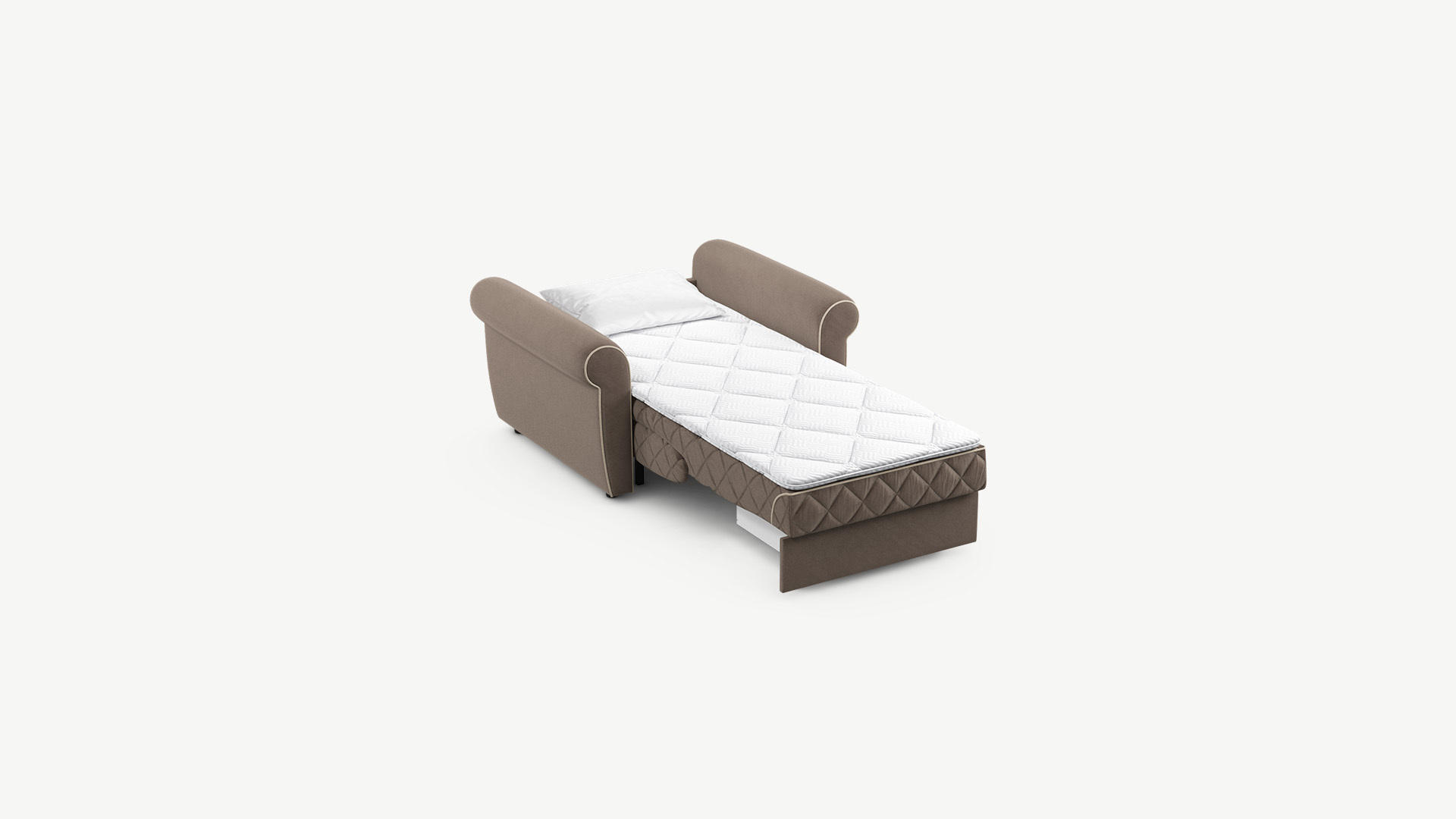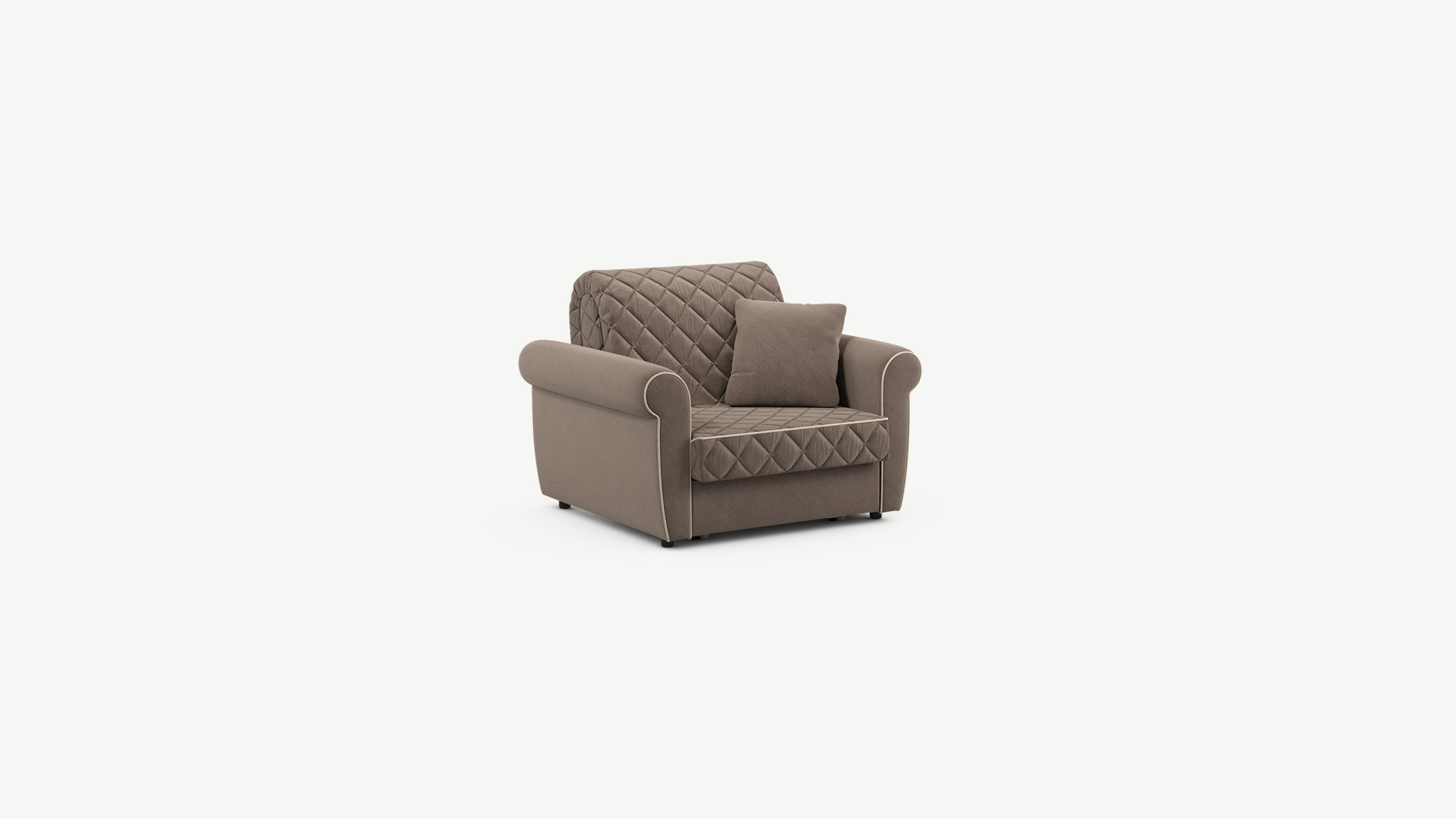 Дизайн MOON FAMILY 123 с винтажной формой подлокотников настраивает на звучание классики. Стежка в ромб добавляет образу кресла-кровати динамики, делая его более уютным и современным.