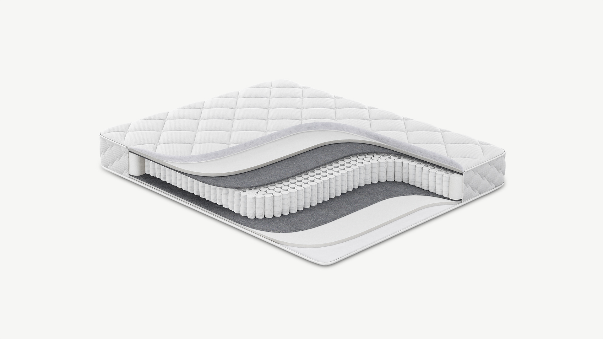 Надежно изолирует комфортные слои от соприкосновения с пружинным блоком и защищает материалы наполнения матраса от износа.