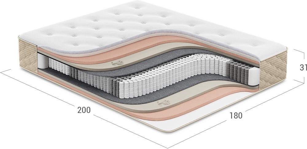 Обеспечивает естественный воздухообмен и сохраняет форму матраса. Выполнен из плотного трикотажа, простеганного на слое упругой пены и искусственного объемного волокна. Точечная стежка поддерживает превосходный уровень комфорта и не позволяет наполнителю смещаться в процессе эксплуатации.