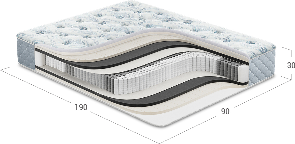 Матрас, в основу которого положен независимый пружинный блок (НПБ). Обратите внимание: чем большее количество пружин приходится на спальное место, тем точнее оказывается поддержка спины, а значит более комфортным становится матрас и Ваш сон.