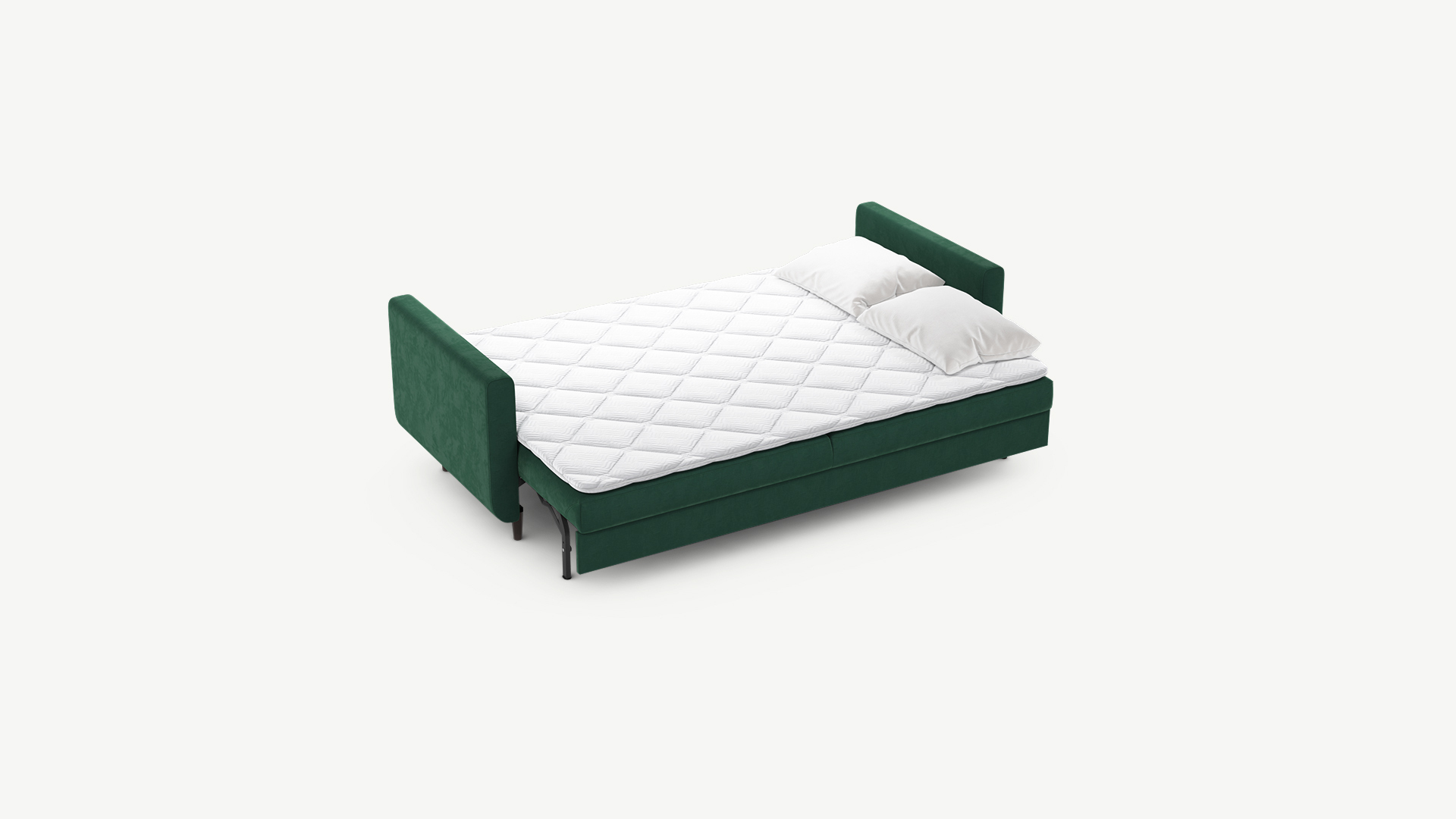 Механизм трансформации «Пантограф» подходит для ежедневного использования. Диван легко раскладывается и складывается, не повреждая напольное покрытие. Диван стоит на четырех основных опорах, в то время как дополнительные остаются скрытыми, появляясь плавно и бесшумно в единственно нужный момент — при трансформации дивана в кровать.