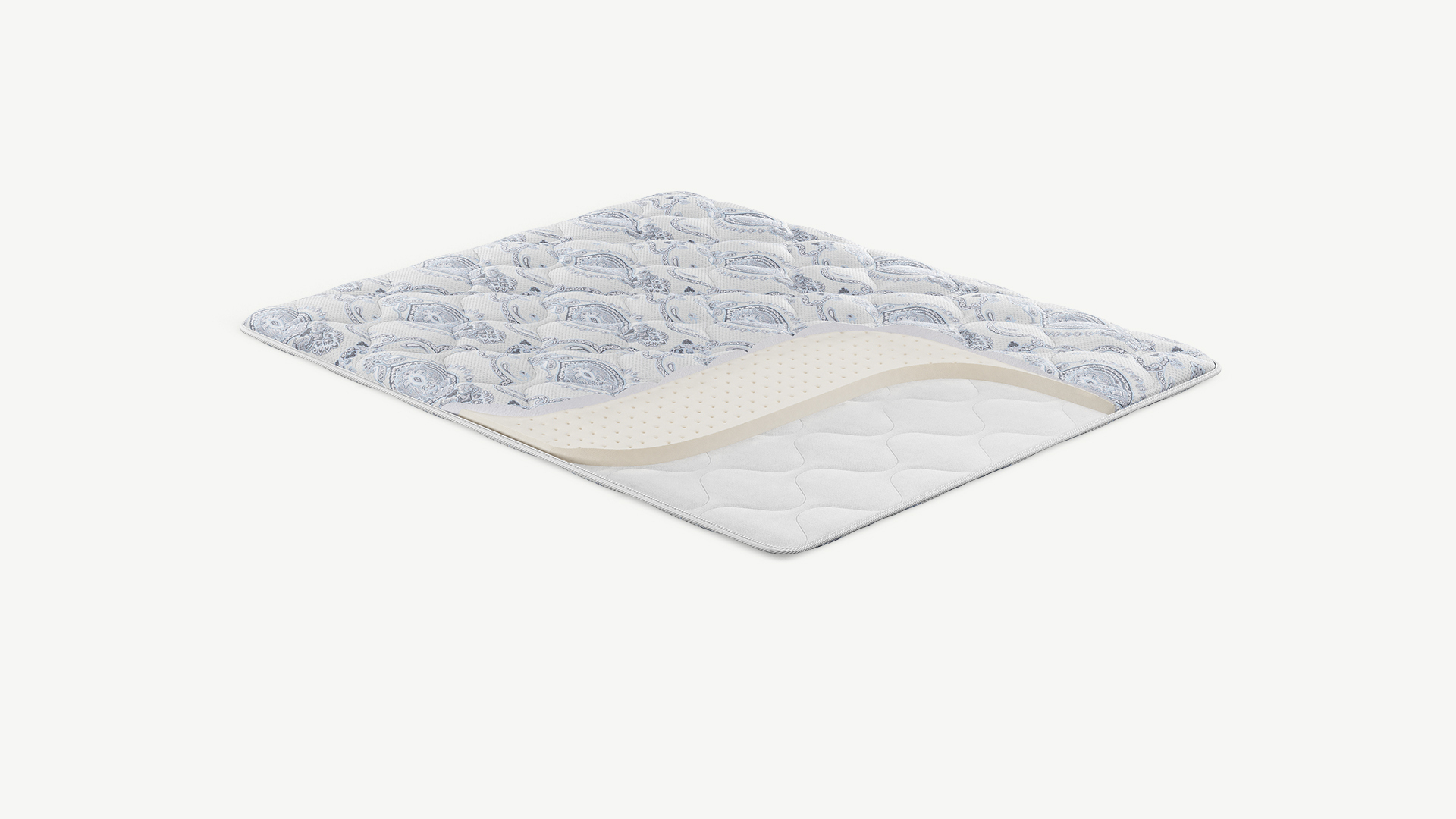 В основе топпера — натуральный латекс Latexgold, который обеспечивает упругую поддержку тела, снимает нагрузку с мышц и поддерживает физиологически естественное положение позвоночника, предотвращая возникновение излишнего прогиба в поясничном отделе.