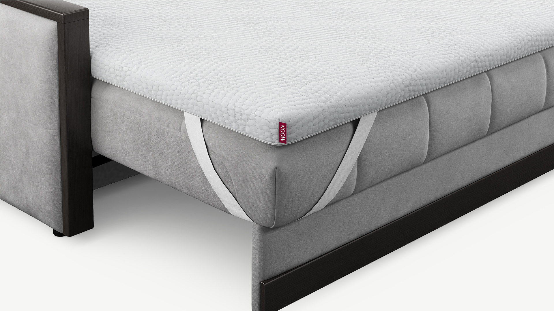 Дополнительно на топпере предусмотрены эластичные петли — для высоких матрасов MOON Comfort и MOON Prestige, оснащенных системой крепления на пуговицы по бокам.