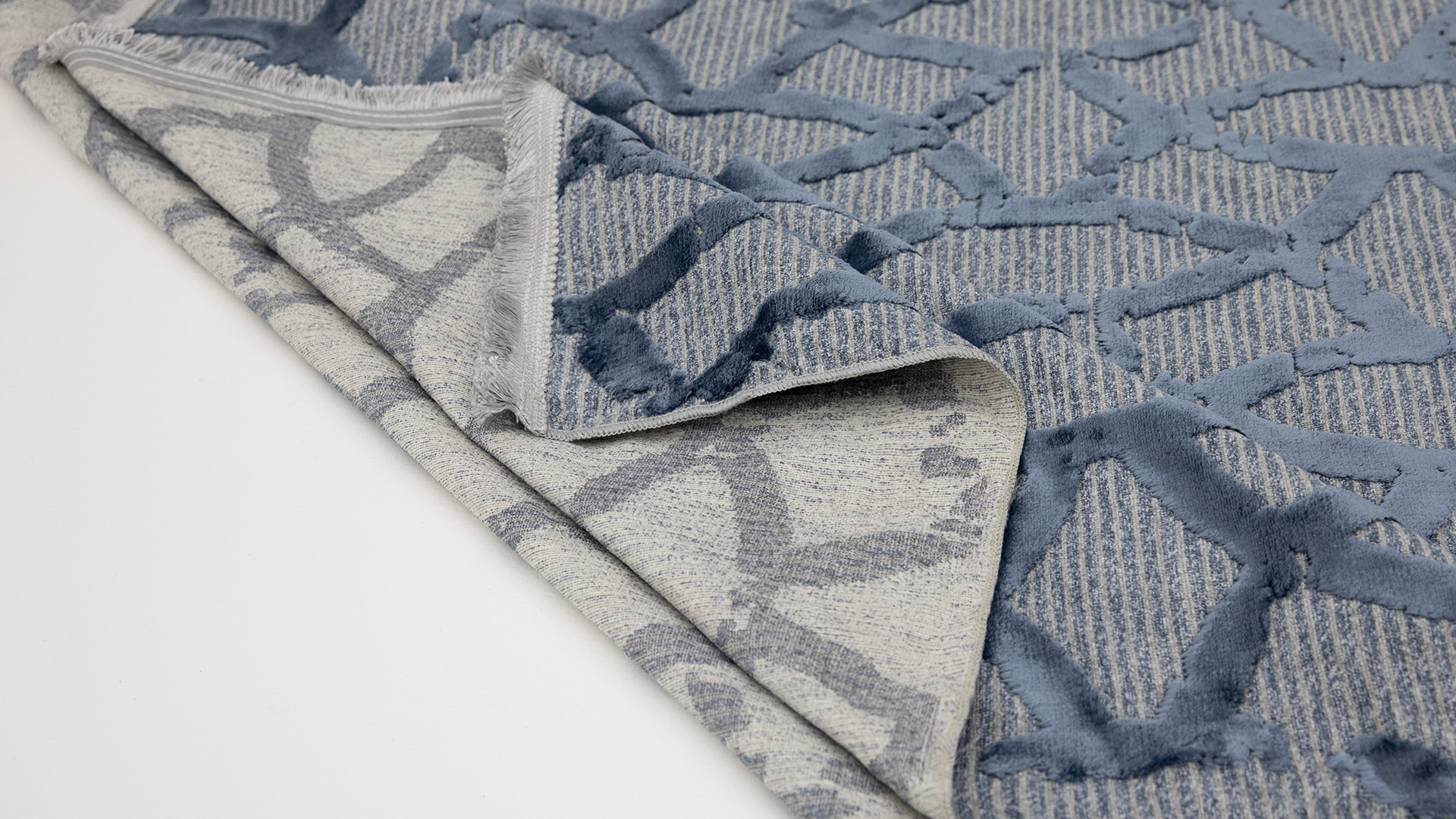 Ворс толщиной в 2 мм создает приятный рельефный узор ковра. Мягкий и блестящий, направленный в одну сторону, он позволяет наблюдать игру цвета при смене ракурса и освещения. Цвет узора колеблется от блестящего светлого до матового темного.