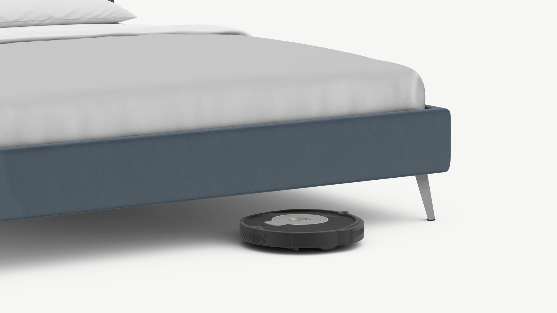 Высокие металлические опоры наклонной формы создают над полом достаточный просвет для движения робота-пылесоса, что помогает поддерживать чистоту и порядок в доме.