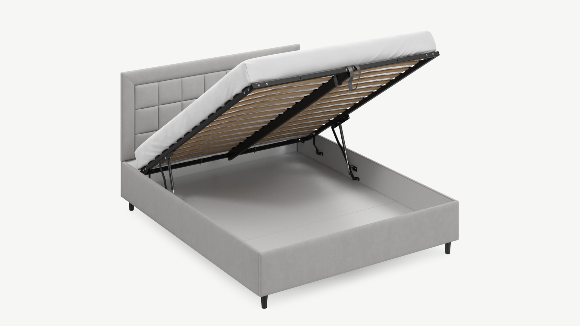 Регулируемый подъемный механизм с газовыми амортизаторами позволяет плавно и бесшумно поднимать и опускать спальное место.