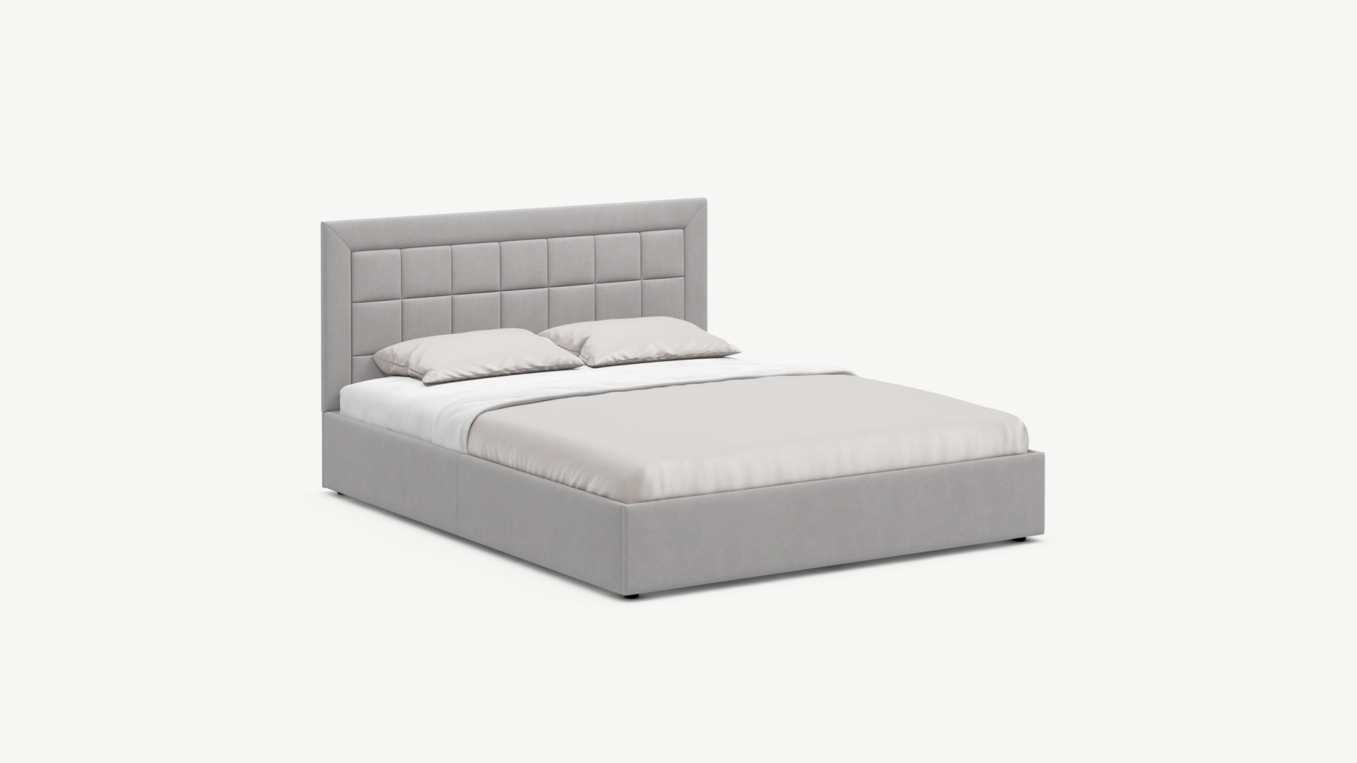 Кровать MOON FAMILY 1251 украшена объемной стежкой-рисунком. Особую выразительность стежка в крупный квадрат получает за счет глубины шва и фактурности проступающего рисунка. Помещенная в центр изголовья, стежка обрамлена тканью, словно картина – рамой. Формы MOON FAMILY 1251 оставлены максимально простыми. Едва заметные вертикальные шовчики на боковых царгах кровати добавляют образу шарма, удачно оттеняя уверенное звучание прямых и искусный декор изголовья.