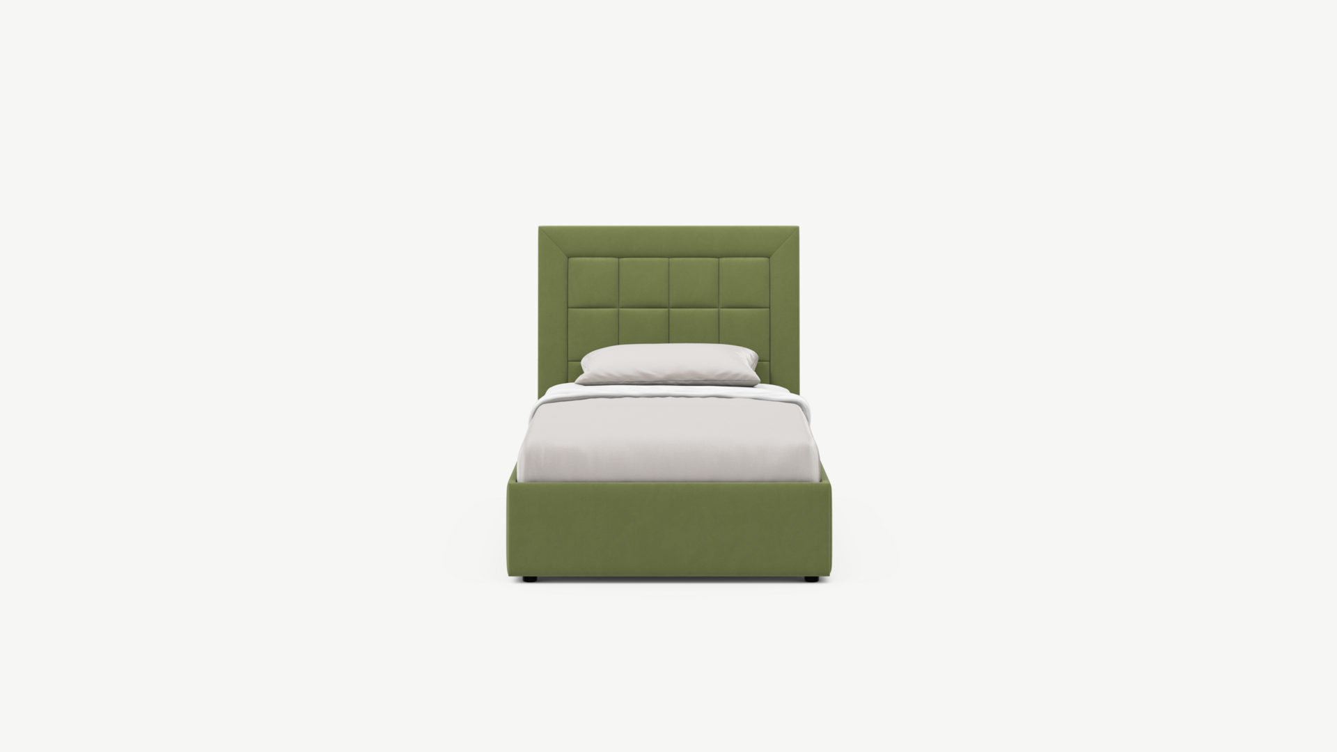 Кровать MOON FAMILY 1251 украшена объемной стежкой-рисунком. Особую выразительность стежка в крупный квадрат получает за счет глубины шва и фактурности проступающего рисунка. Помещенная в центр изголовья, стежка обрамлена тканью, словно картина – рамой. Формы MOON FAMILY 1251 оставлены максимально простыми. Едва заметные вертикальные шовчики на боковых царгах кровати добавляют образу шарма, удачно оттеняя уверенное звучание прямых и искусный декор изголовья.