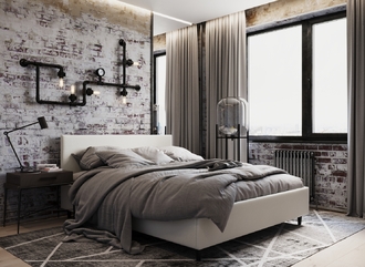 Фактура обивочного материала подбирается дизайнерами с учетом технологических и стилевых особенностей кровати.