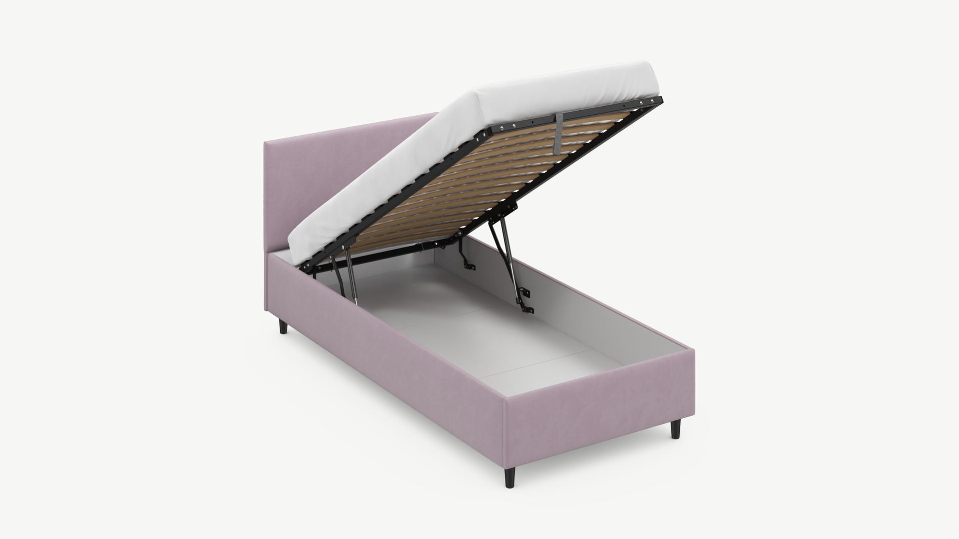 Регулируемый подъемный механизм с газовыми амортизаторами позволяет плавно и бесшумно поднимать и опускать спальное место.