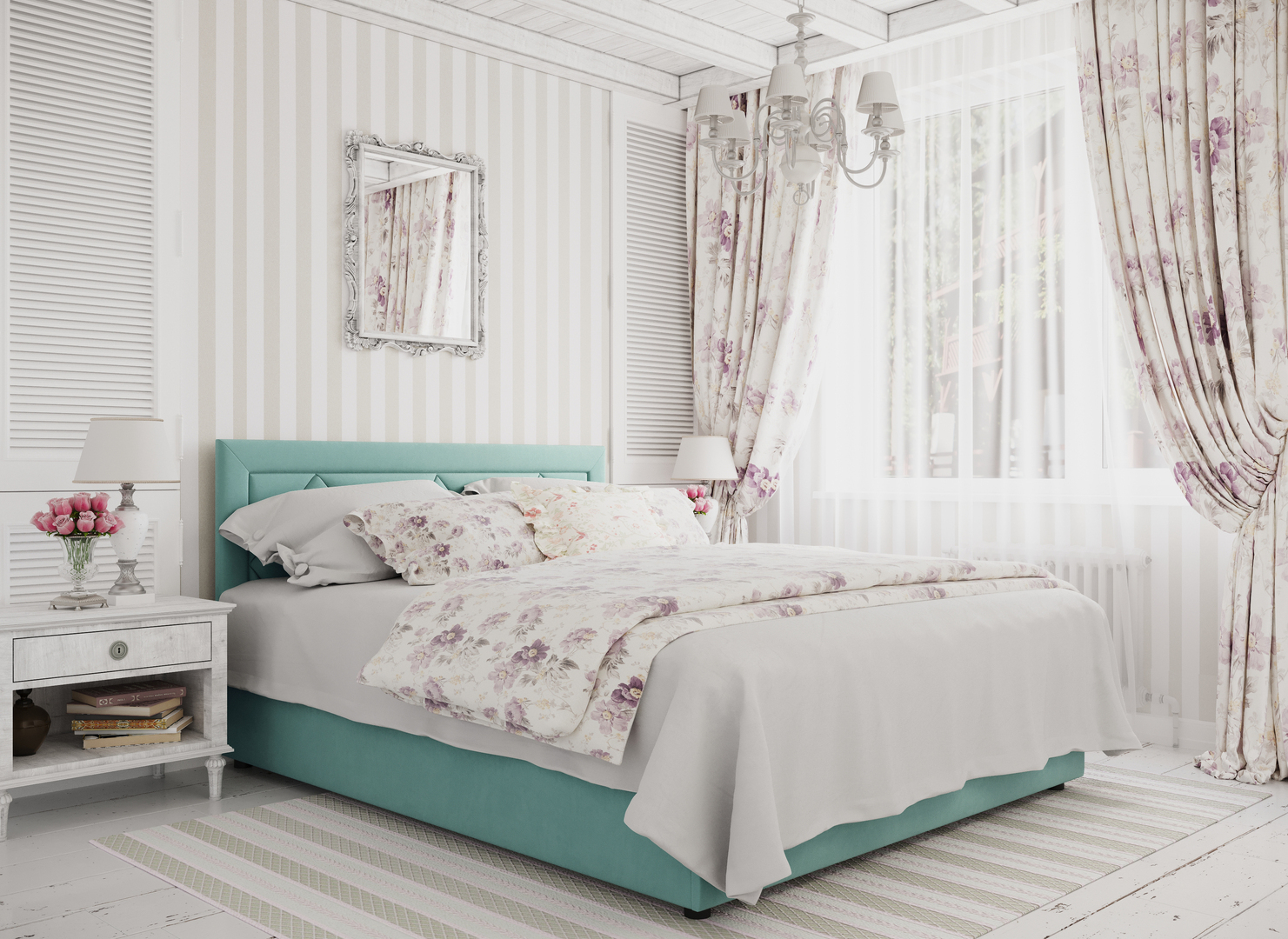 Фактура обивочного материала подбирается дизайнерами с учетом технологических и стилевых особенностей кровати.