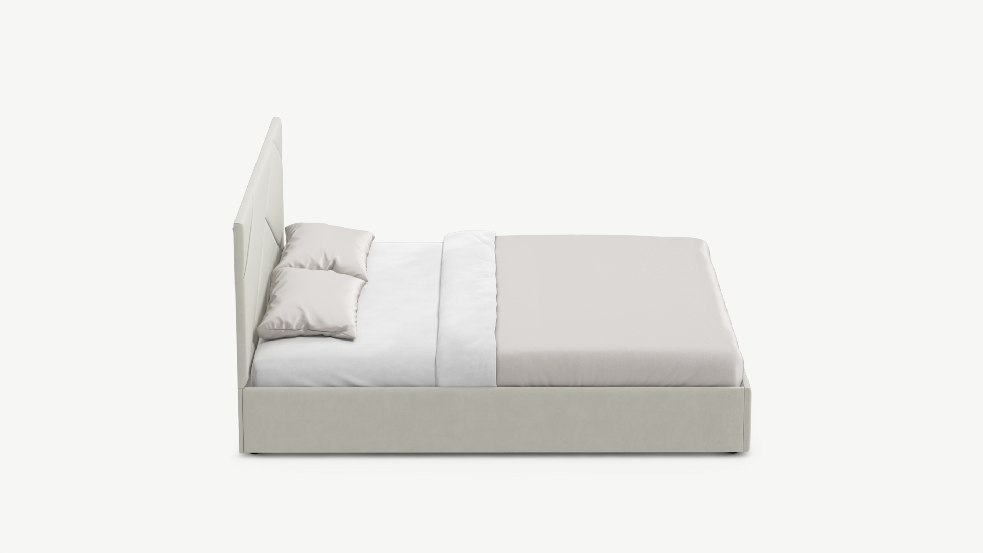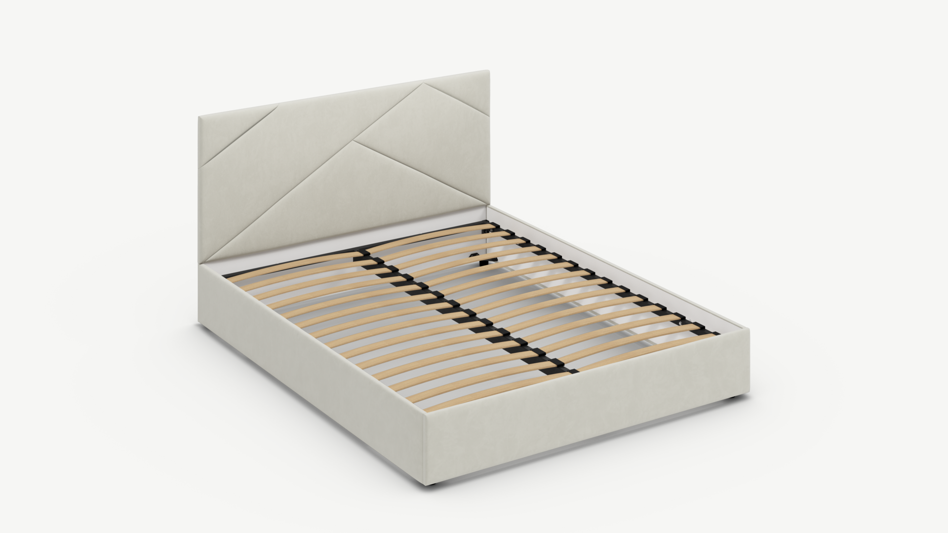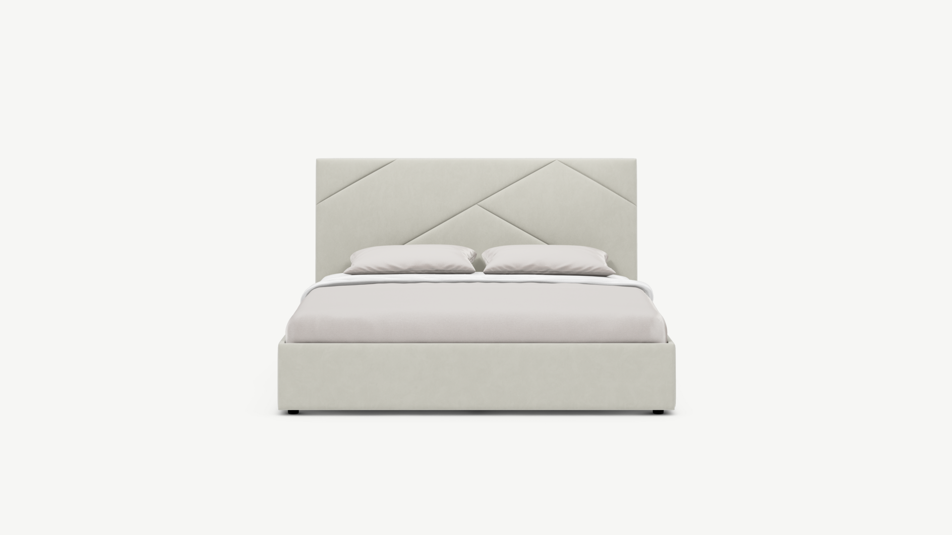 MOON FAMILY 1257 привлекает внимание оригинальным исполнением: широкие полосы ткани эффектно пересекают периметр изголовья, создавая на нем графический орнамент. Элегантным и практичным акцентом служат скрытые карманы, расположенные по его углам. Лаконичные формы объемных царг создают единый гармоничный образ и фокусируют внимание на центральном текстурном элементе кровати.