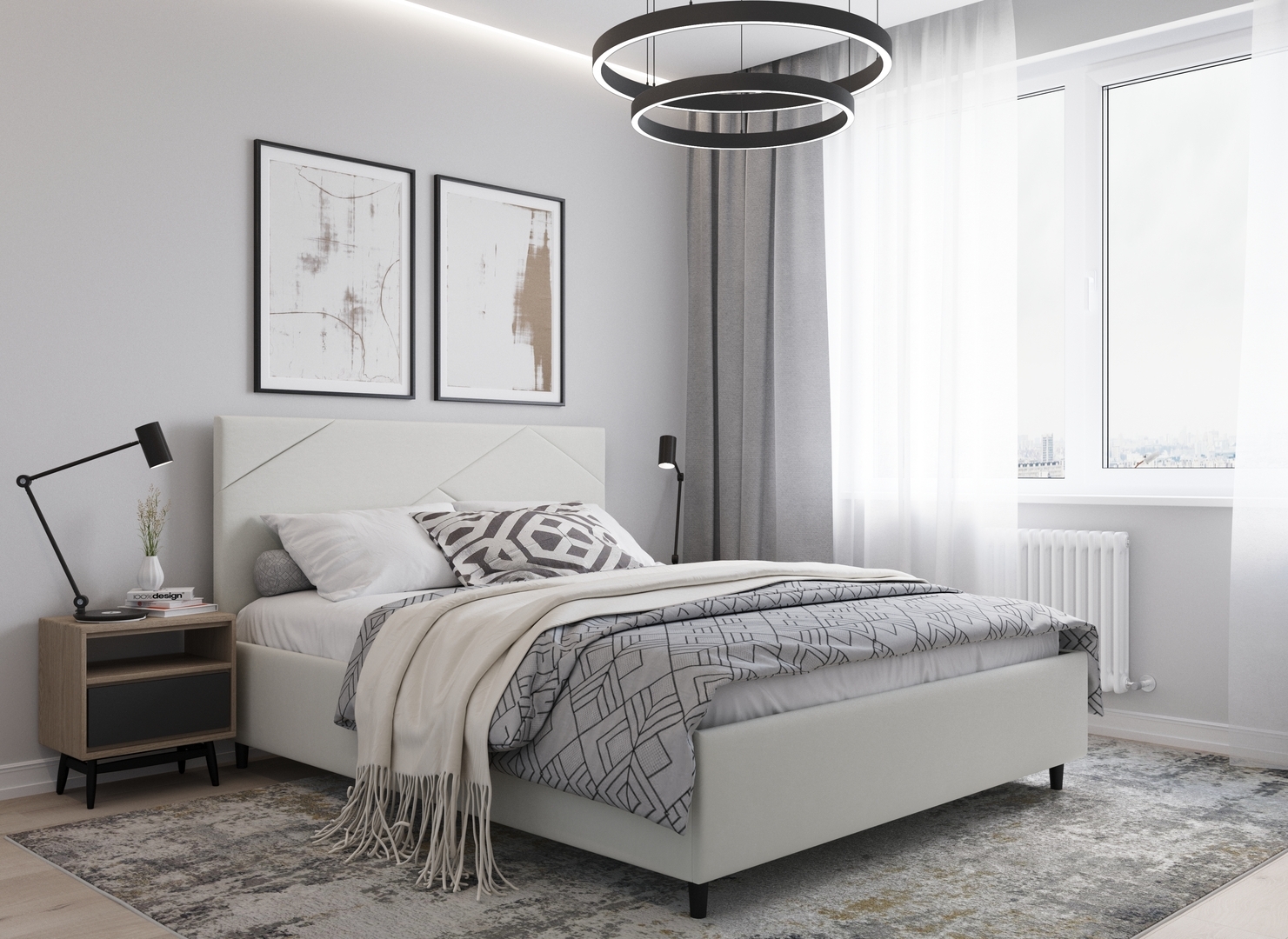 Элегантным и практичным акцентом служат скрытые карманы, расположенные по его углам. Лаконичные формы объемных царг создают единый гармоничный образ и фокусируют внимание на центральном текстурном элементе кровати.