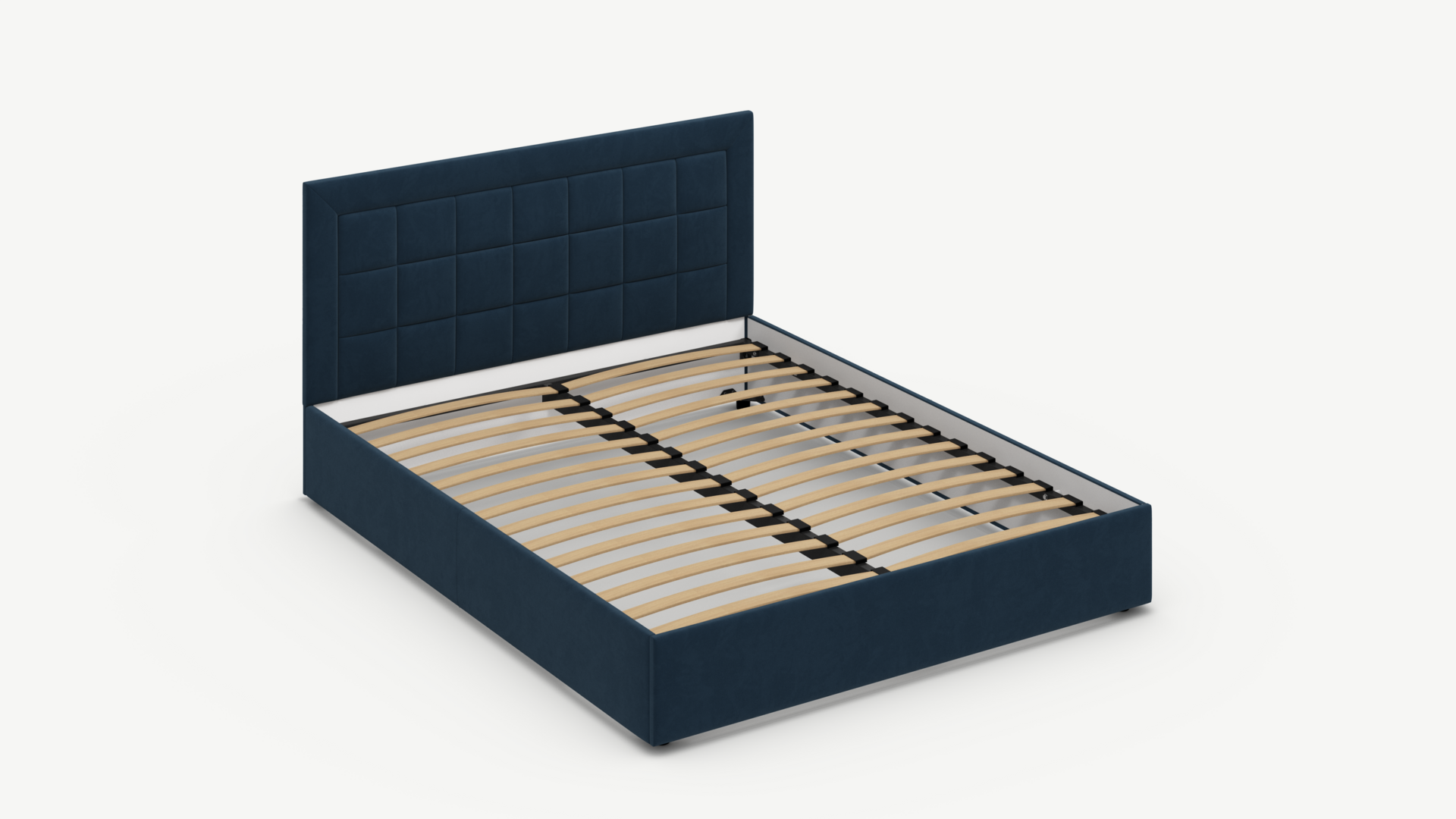Стежка помещена в центр изголовья и обрамлена, словно картина. Объемные царги становятся гармоничным дополнением образа и завершают цельную фигуру кровати.