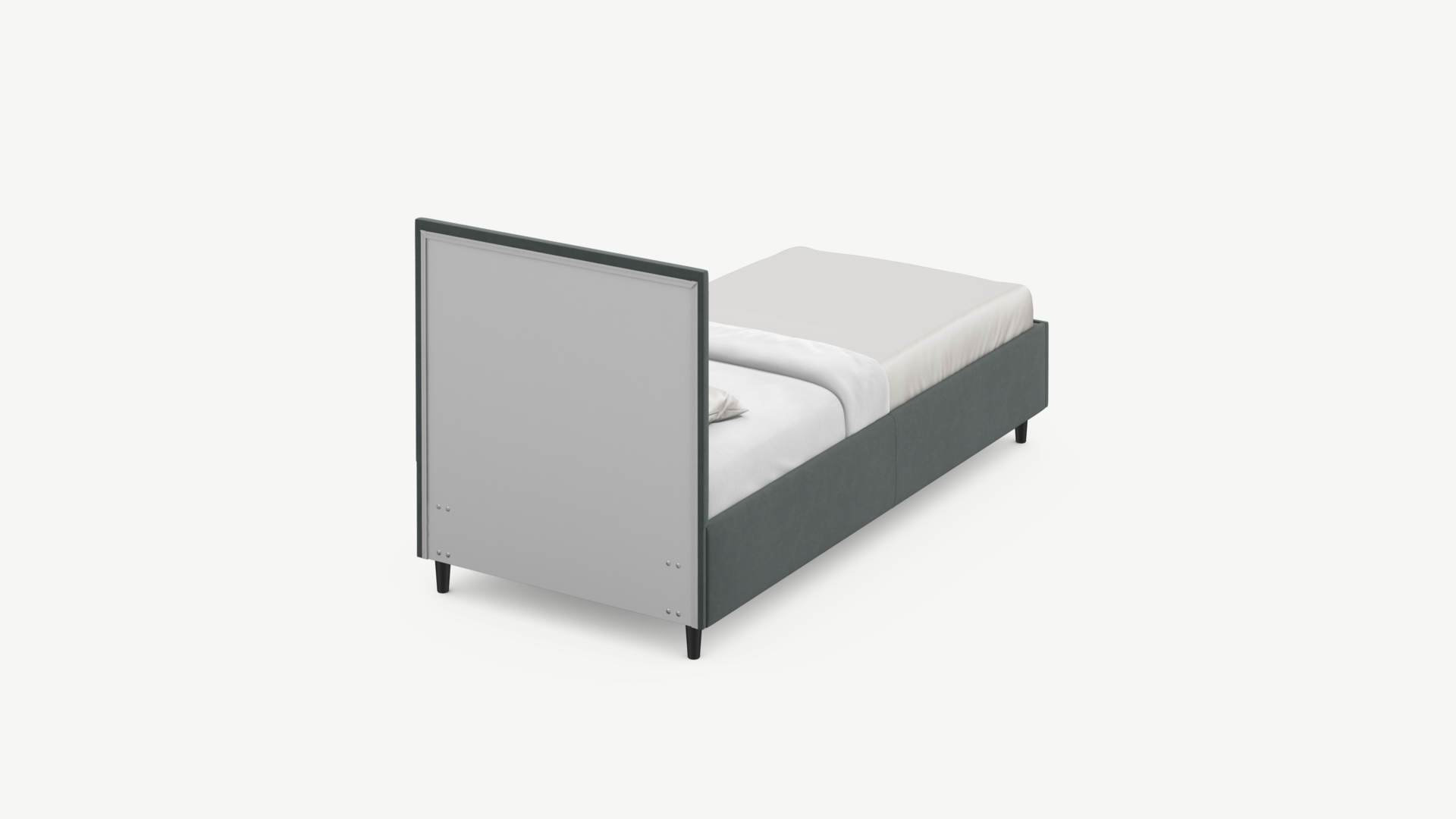 Стежка помещена в центр изголовья и обрамлена, словно картина. Объемные царги завершают цельную фигуру кровати и становятся гармоничным дополнением ее образа.