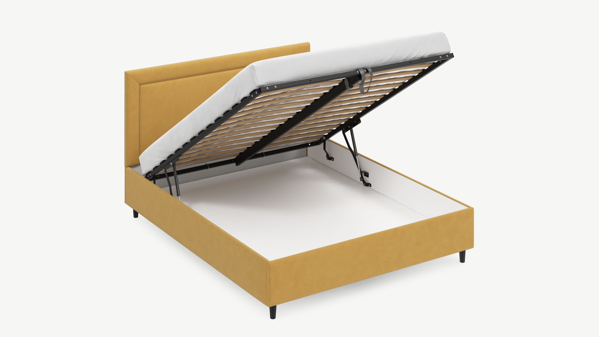 Регулируемый подъемный механизм с газовыми амортизаторами позволяет плавно и бесшумно поднимать и опускать спальное место.