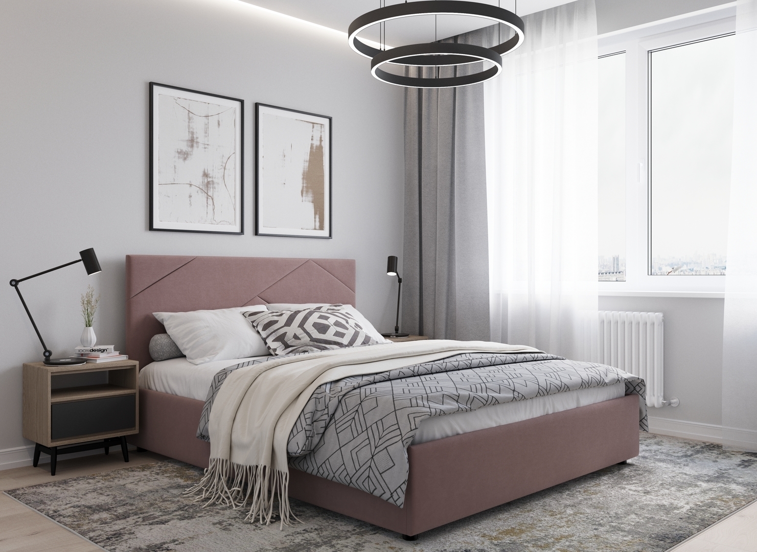 MOON FAMILY 1257 привлекает внимание оригинальным исполнением: широкие полосы ткани эффектно пересекают периметр изголовья, создавая на нем графический орнамент. Элегантным и практичным акцентом служат скрытые карманы, расположенные по его углам. Лаконичные формы объемных царг создают единый гармоничный образ и фокусируют внимание на центральном текстурном элементе кровати.