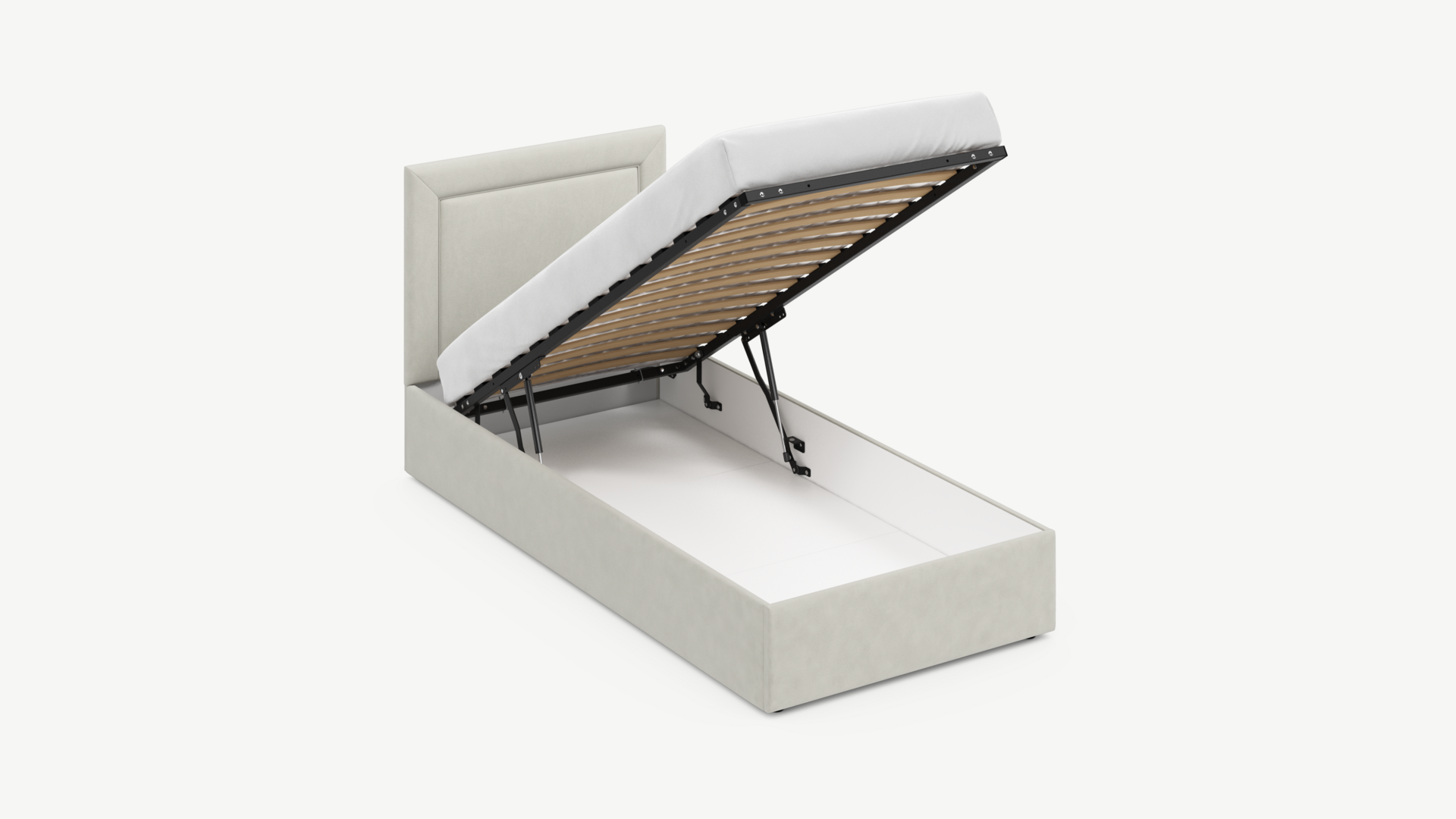 Регулируемый подъемный механизм с газовыми амортизаторами позволяет плавно и бесшумно поднимать и опускать спальное место.