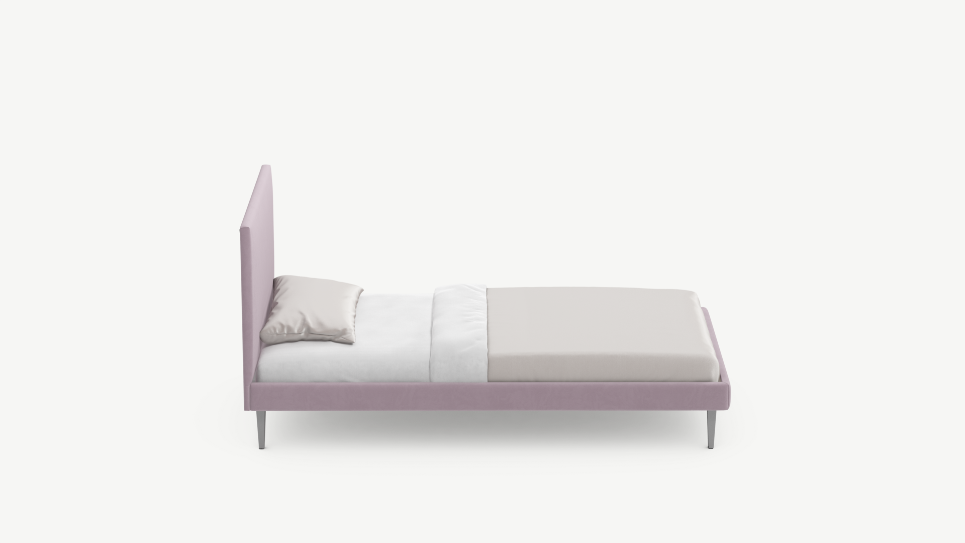 Кровать MOON FAMILY 1256 демонстрирует безупречный баланс изящных пропорций. Лаконичное изголовье, узкие царги и высокие опоры создают эффектный образ, привносящий в пространство спальни стильный и яркий акцент.
