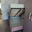• Регулируемый подъемный механизм имеет два положения установки газовых амортизаторов в зависимости от веса матраса. Это дает возможность оптимально подстраивать угол подъема основания, а также плавно и бесшумно поднимать и опускать спальное место.