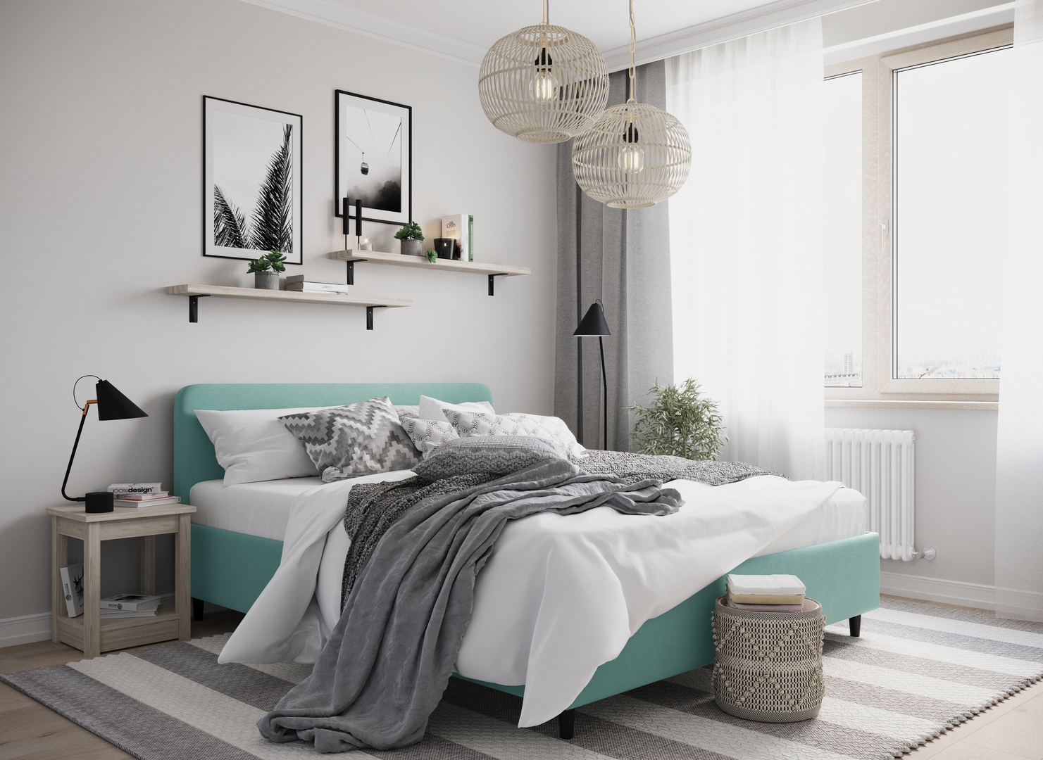 Создать гармоничный интерьер и завершить образ спальни помогут дополнительные аксессуары, например: тумбы, банкетки, подушки.