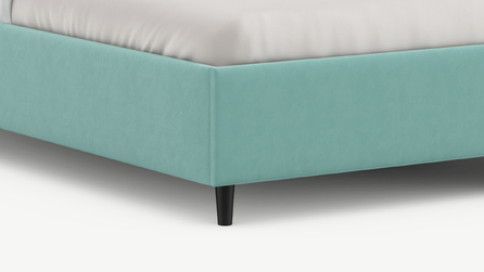 Царга, задающая пропорции, благодаря гладкости своей фактуры подчеркивает центральный элемент декора. Высокие опоры приподнимают фигуру кровати над полом и добавляют её образу визуальной легкости.