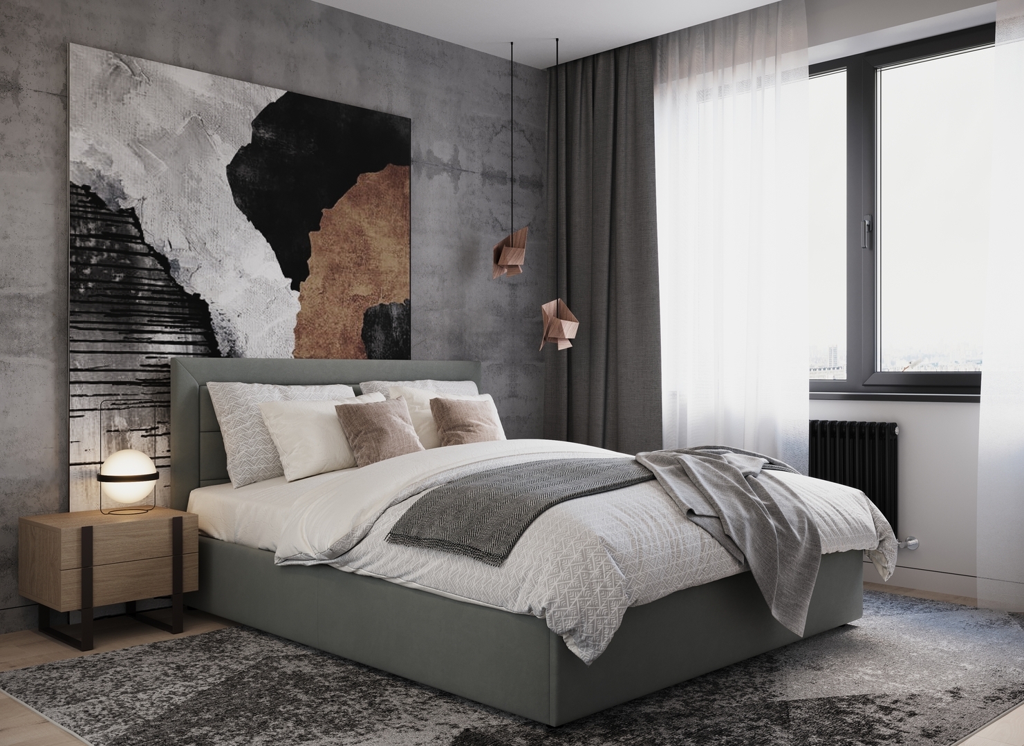 Создать гармоничный интерьер и завершить образ спальни помогут дополнительные аксессуары, например: тумбы, банкетки, подушки.