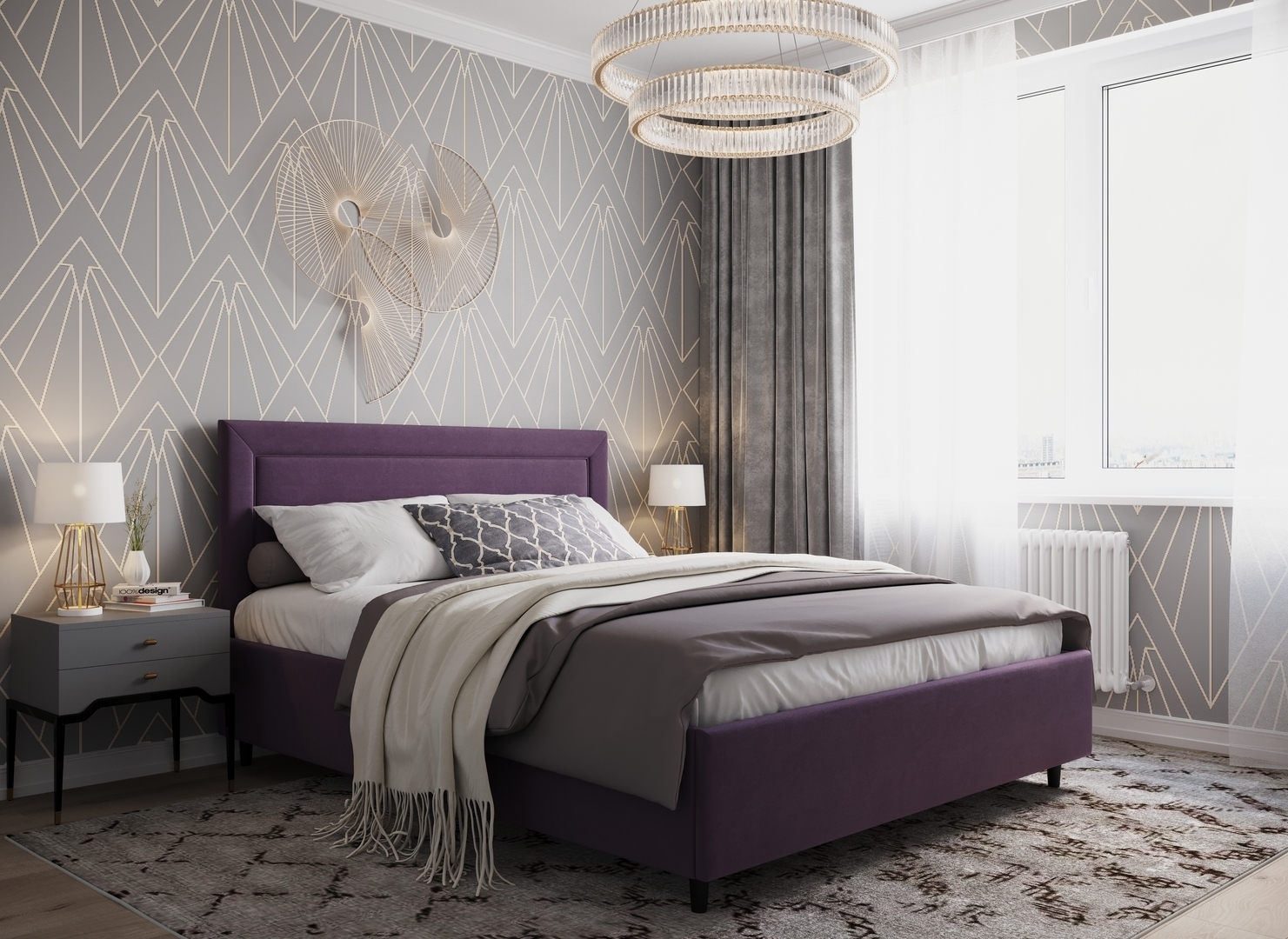 Создать гармоничный интерьер, а также целостный образ спальни помогут дополнительные аксессуары - например, тумбы, банкетки, подушки.