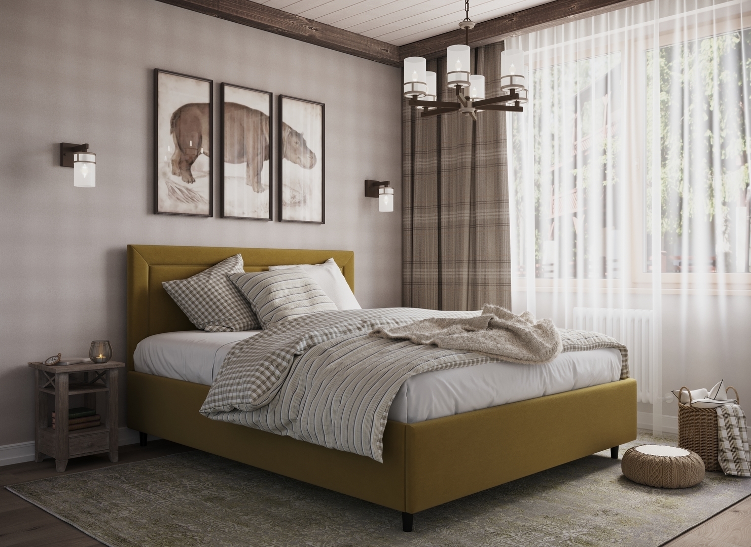 Регулируемый подъемный механизм с газовыми амортизаторами позволяет плавно и бесшумно поднимать и опускать спальное место.
