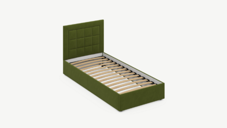 Рама, изголовье и царги надежно крепятся между собой, обеспечивая прочность и устойчивость кровати.