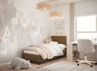 Фактура обивочного материала подбирается дизайнерами с учетом технологических и стилевых особенностей кровати.