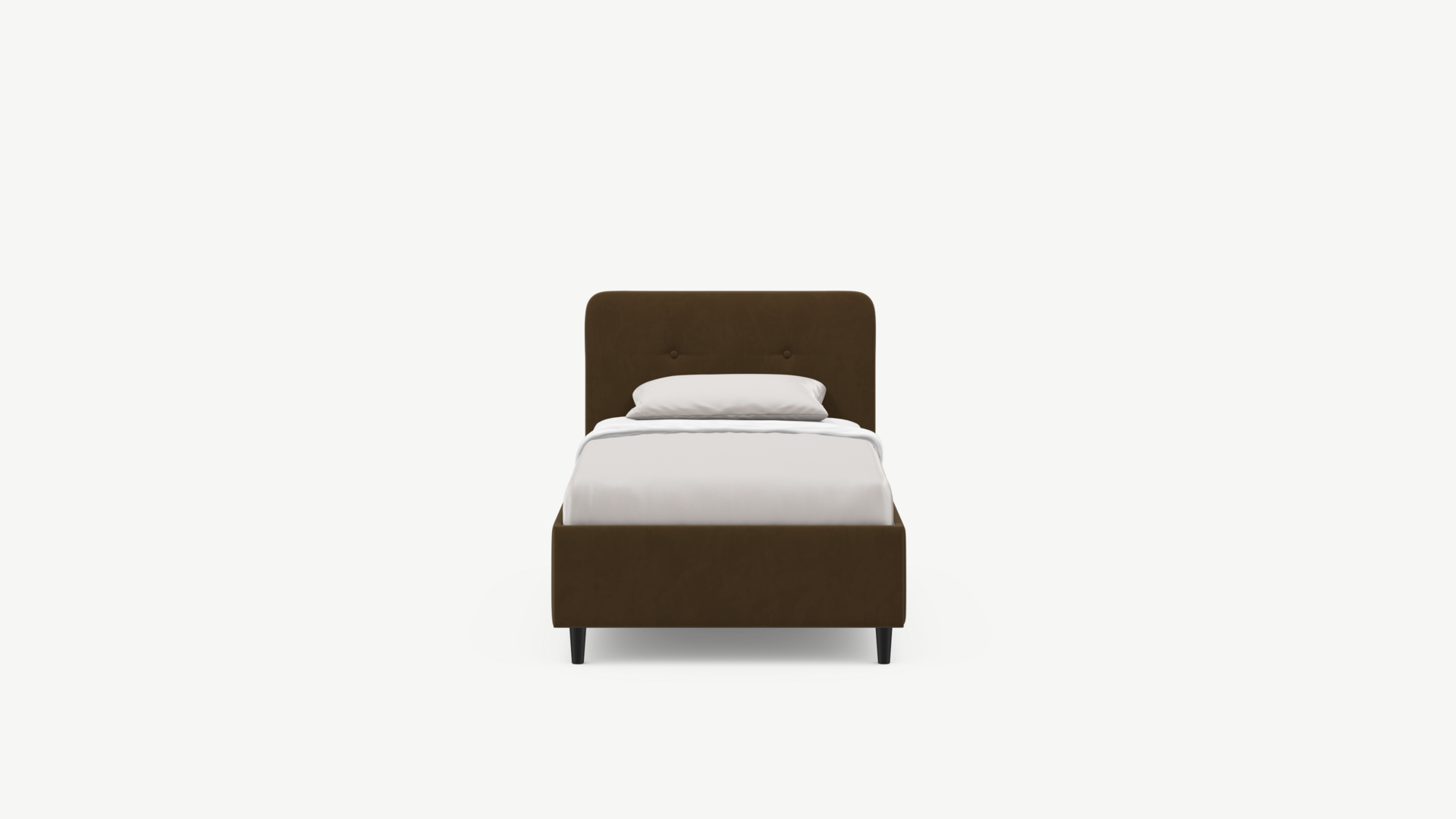 Царга, задающая пропорции, благодаря гладкости своей фактуры подчеркивает центральный элемент декора. Высокие опоры приподнимают фигуру кровати над полом и добавляют её образу визуальной легкости.