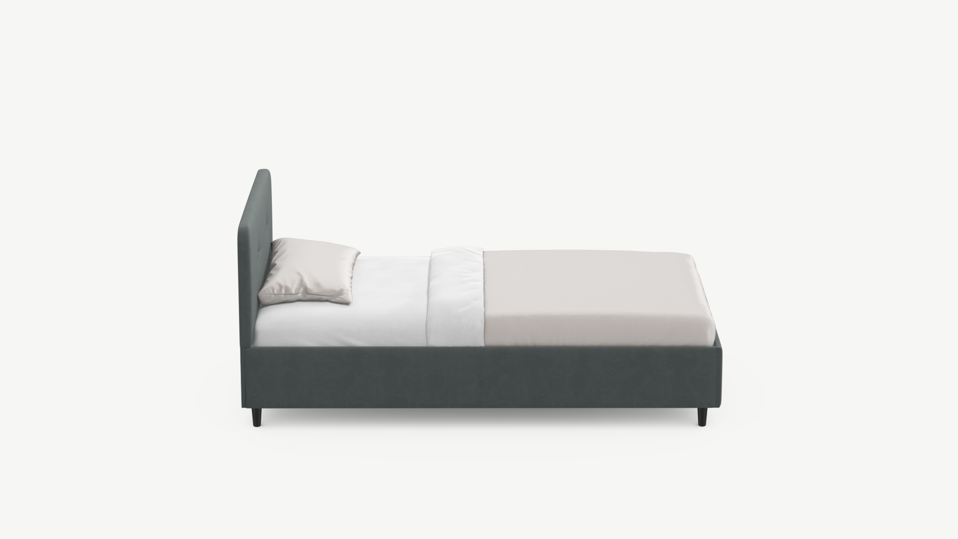Царга, задающая пропорции, благодаря гладкости своей фактуры подчеркивает центральный элемент декора. Высокие опоры приподнимают фигуру кровати над полом и добавляют её образу визуальной легкости.