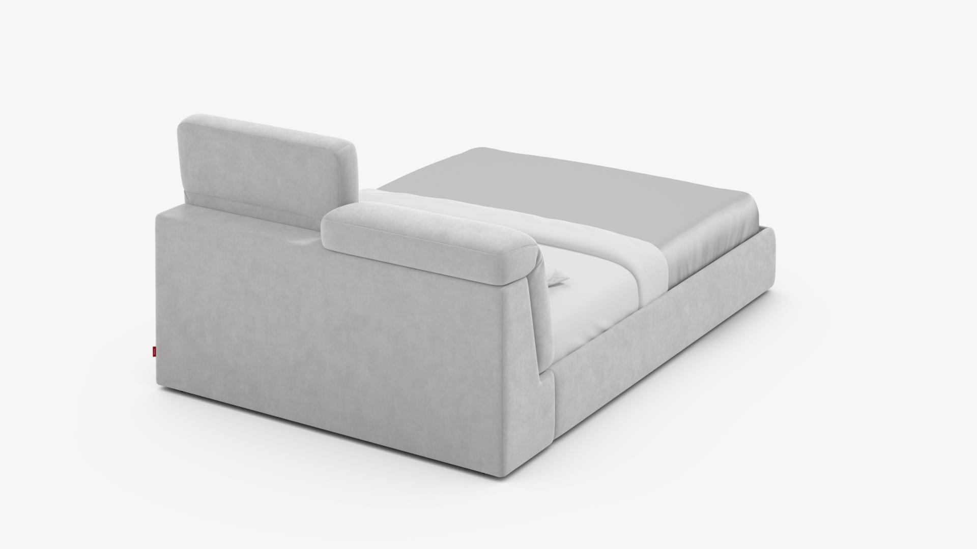 Изголовье подчеркивает эстетику MOON 1107, а также дарит дополнительный комфорт и уют спальному месту. Обратная сторона изголовья выполнена в мебельной ткани и позволяет ставить кровать в центре комнаты для зонирования пространства.
