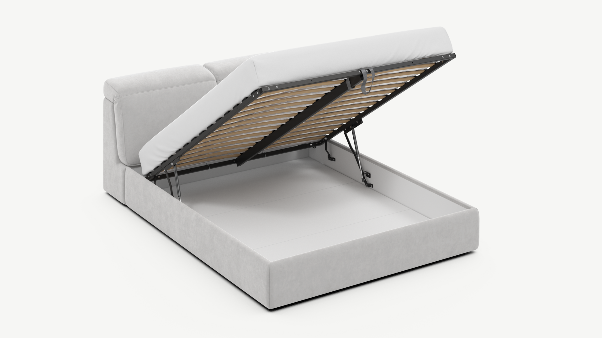 • Скрытая под основанием вместительная емкость без внутренних перегородок позволяет использовать всю площадь подкроватного пространства для хранения вещей.