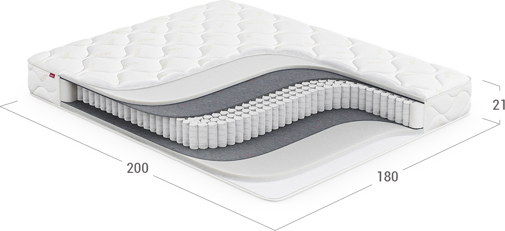 MOON FAMILY  MONO Base – однозональный матрас базовой комплектации с независимой пружинной основой: