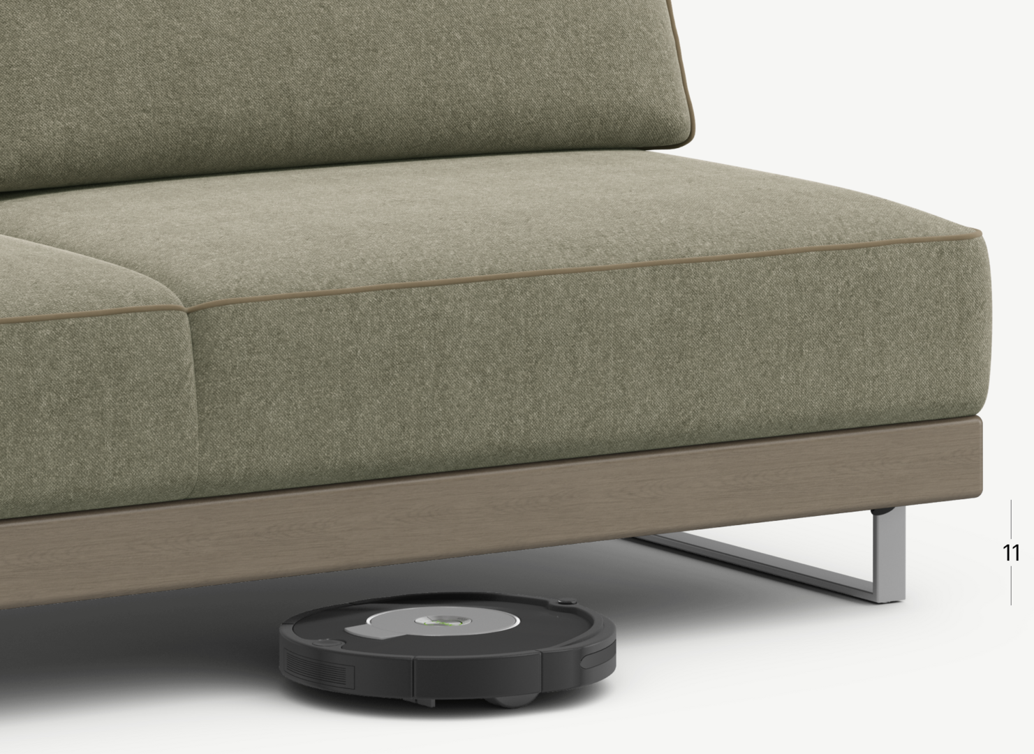 Благодаря высоким прямоугольным опорам под диваном проходит робот-пылесос и легко проводится влажная уборка, что обеспечивает чистоту и порядок в доме.