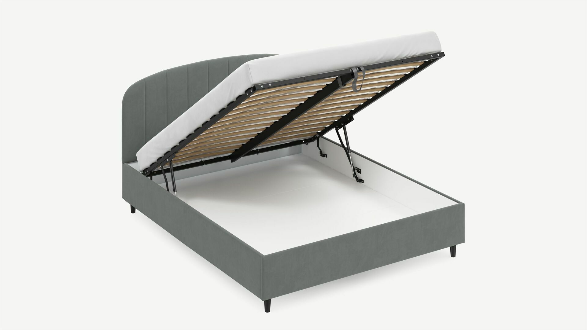 • Скрытая под основанием вместительная емкость без внутренних перегородок позволяет использовать всю площадь подкроватного пространства для хранения вещей.
