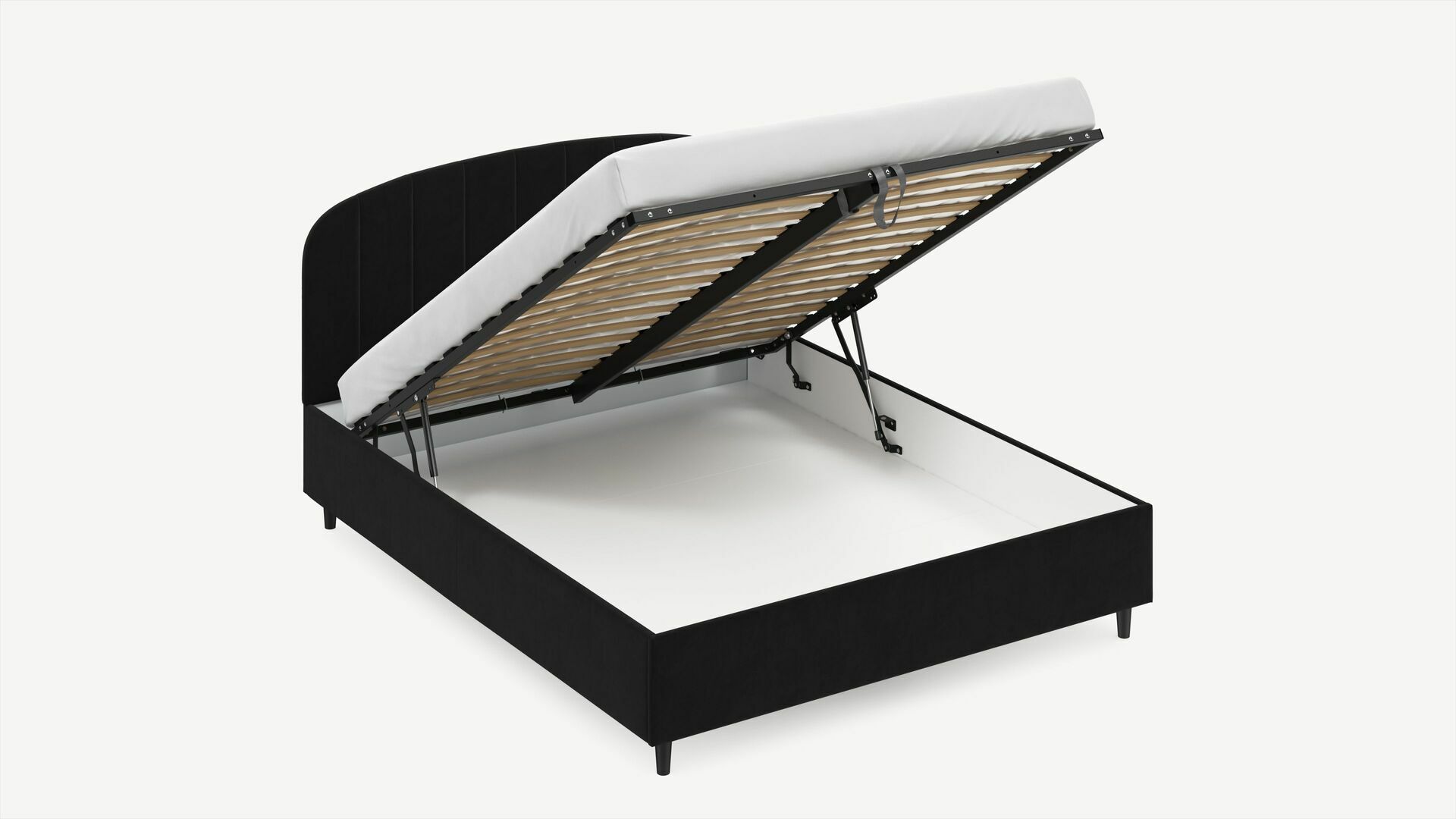 • Скрытая под основанием вместительная емкость без внутренних перегородок позволяет использовать всю площадь подкроватного пространства для хранения вещей.