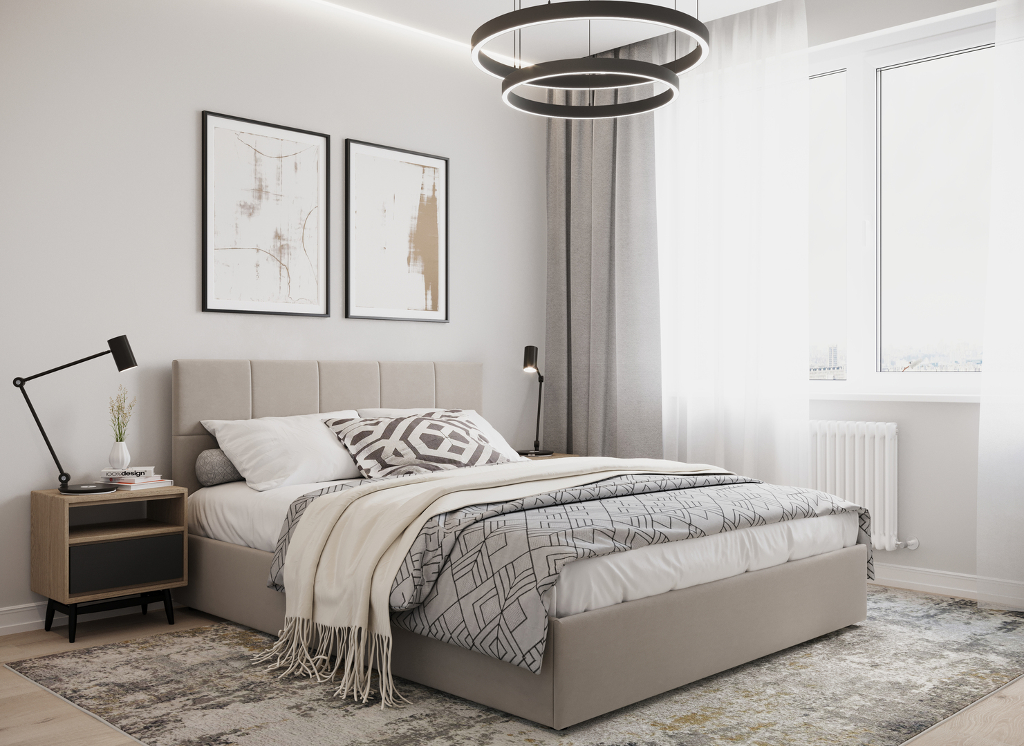 Создать гармоничный интерьер и завершить образ спальни помогут дополнительные аксессуары. Стильные тумбы позволят функционально использовать место у изголовья кровати. Элегантные банкетки, расположенные у изножья, предоставят дополнительное место для хранения. Разнообразие декоративных подушек позволит создать акценты и внести яркость или спокойствие в общий цветовой ансамбль.