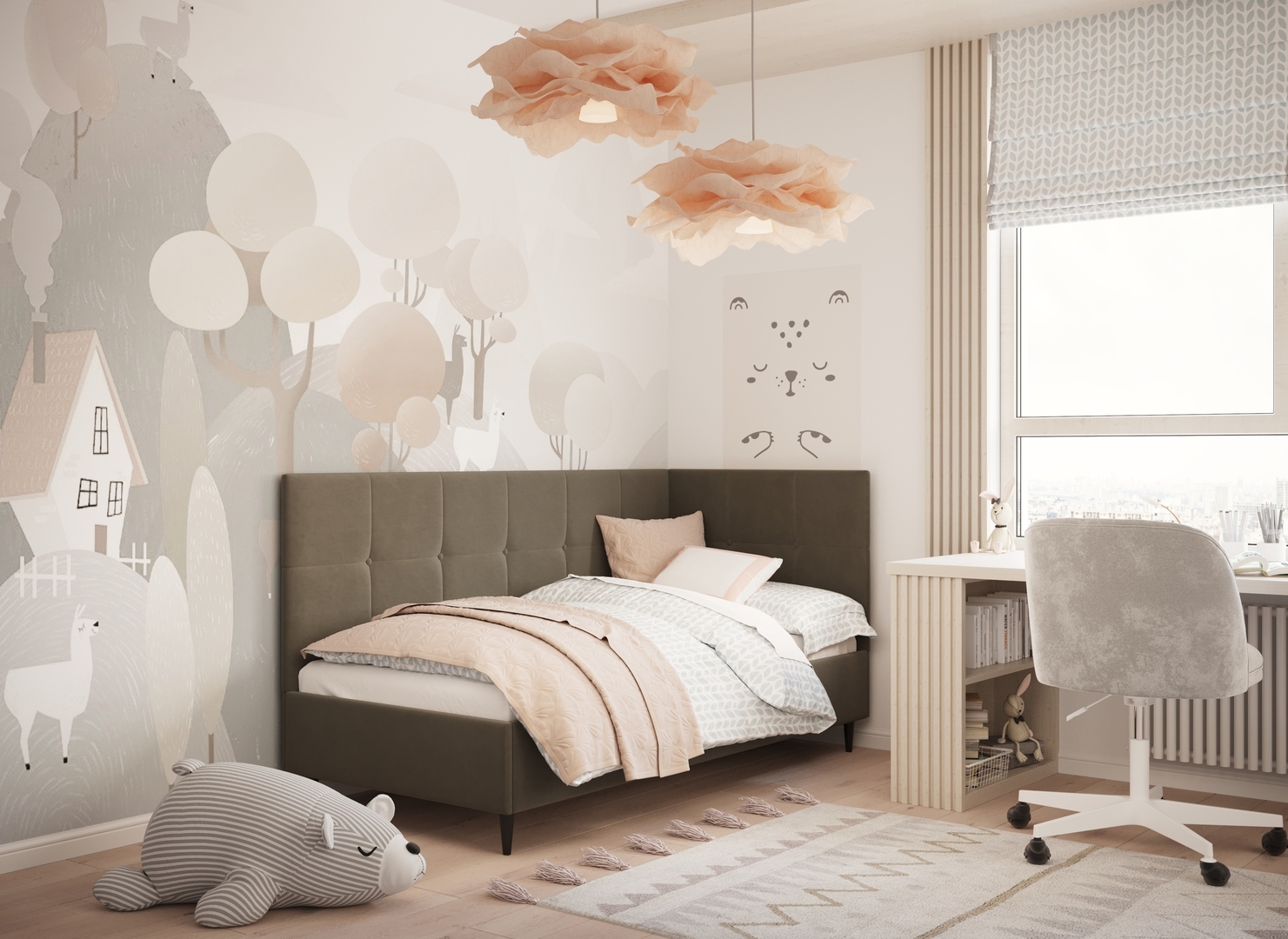 В подростковой комнате эта кровать станет стильным акцентом окружающего интерьера и возьмет на себя роль удобной кушетки для друзей, зашедших в гости.