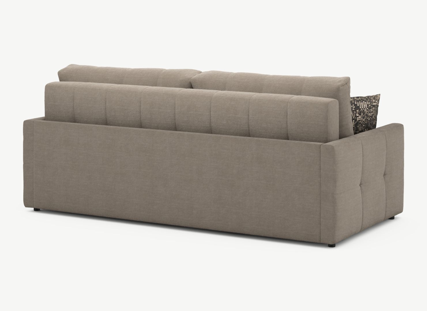 Спинка, выполненная в обивочной ткани, позволяет ставить диван в центре комнаты и зонировать пространство.