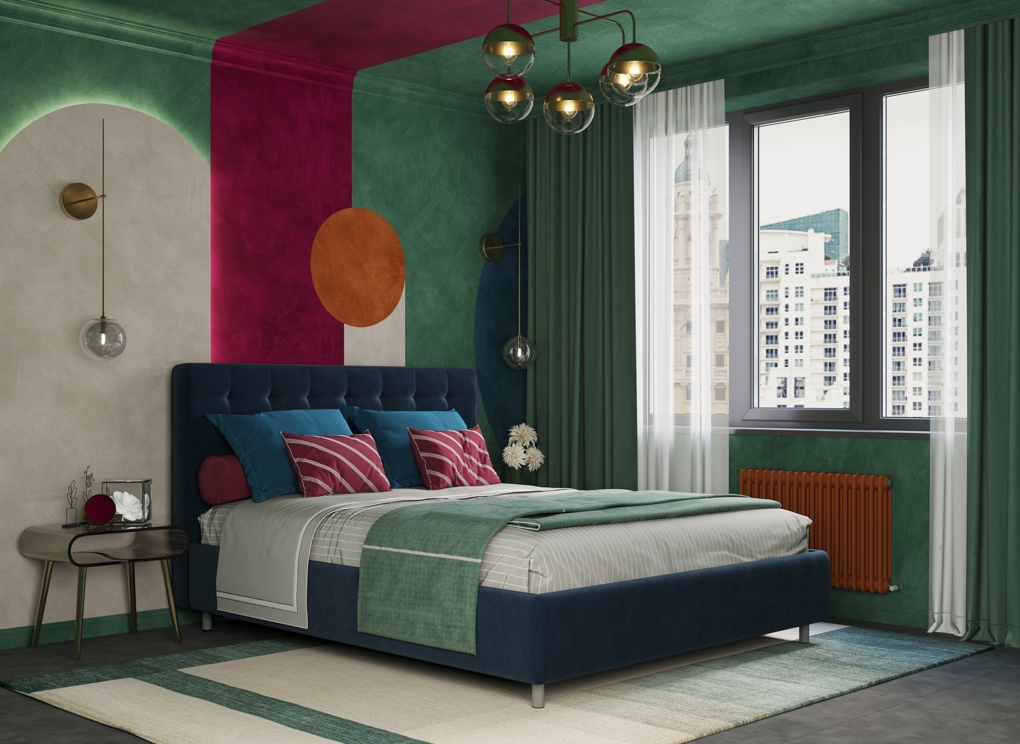 Оформите образ кровати, выбирая обивочный материал, который подчеркнет звучание Вашей спальни и отразит Ваш вкус. Обратите внимание на однотонный гладкий велюр, который усиливает объемную фактуру стежки.