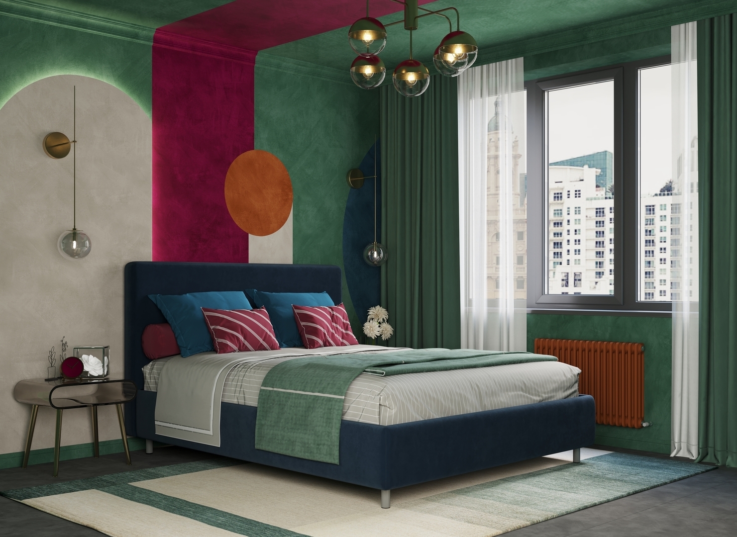 Творческий подход к выбору обивочного материала меняет образ дизайна. Велюр за счет своей бархатистой фактуры привносит в пространство шика и утонченности. Шенилл дополняет оформление спальни природными текстурами, создавая атмосферу тепла и уюта.