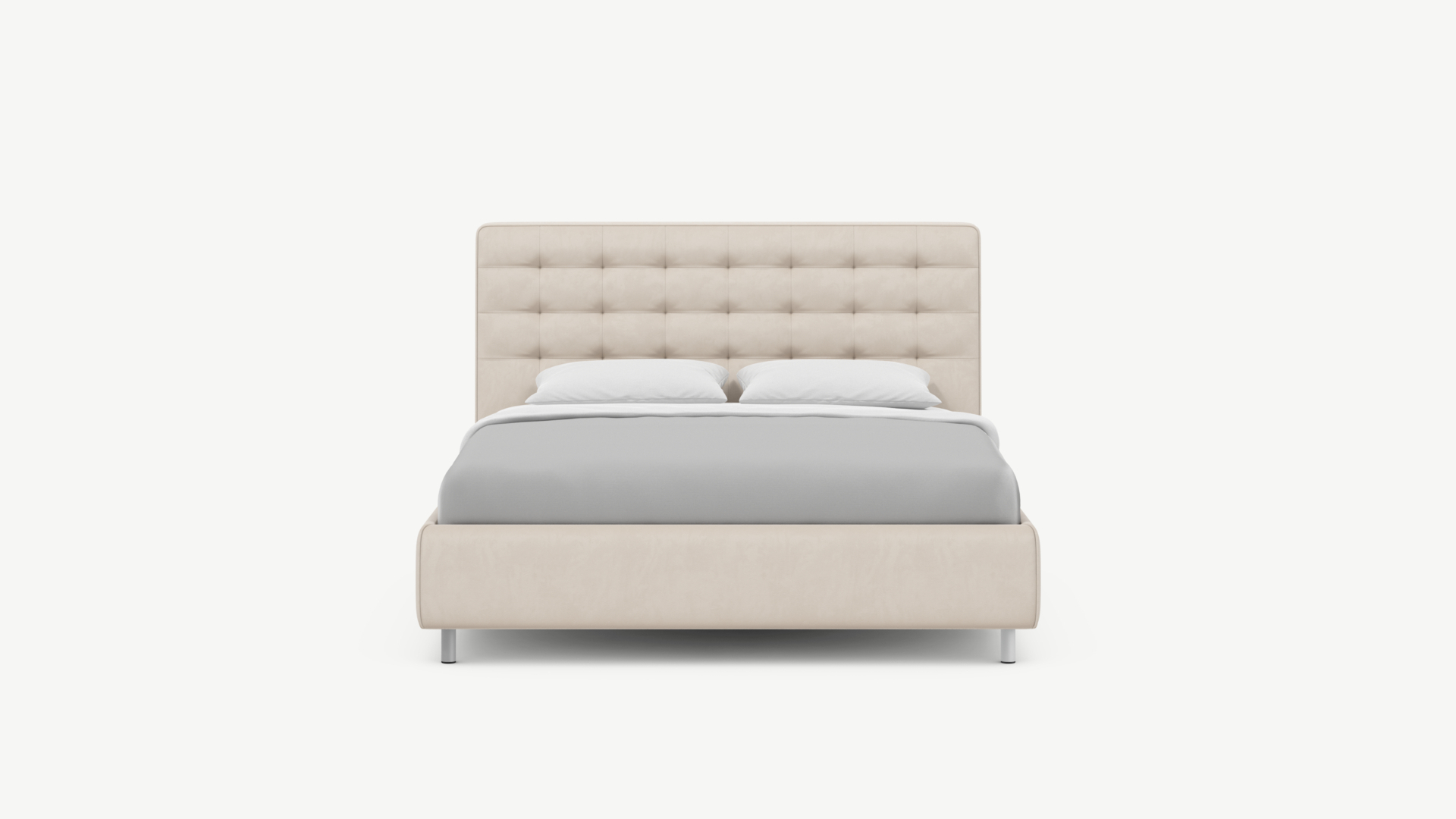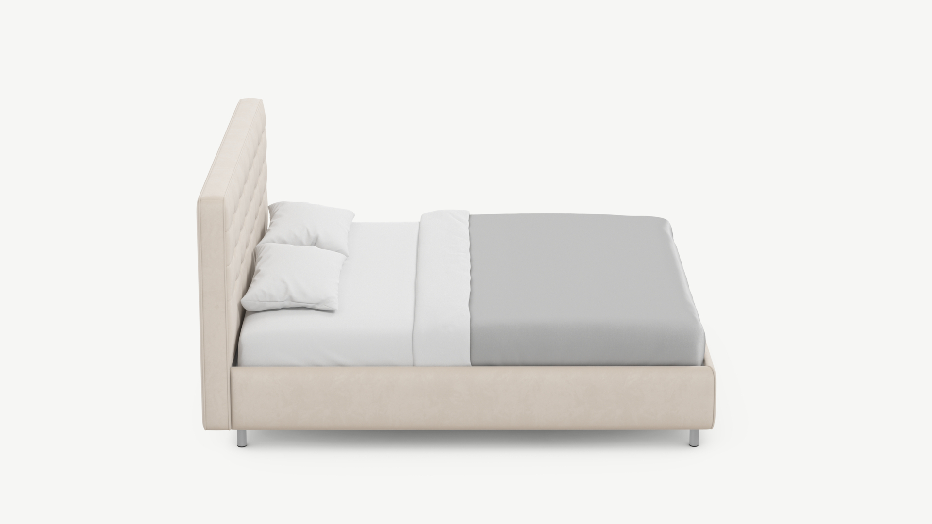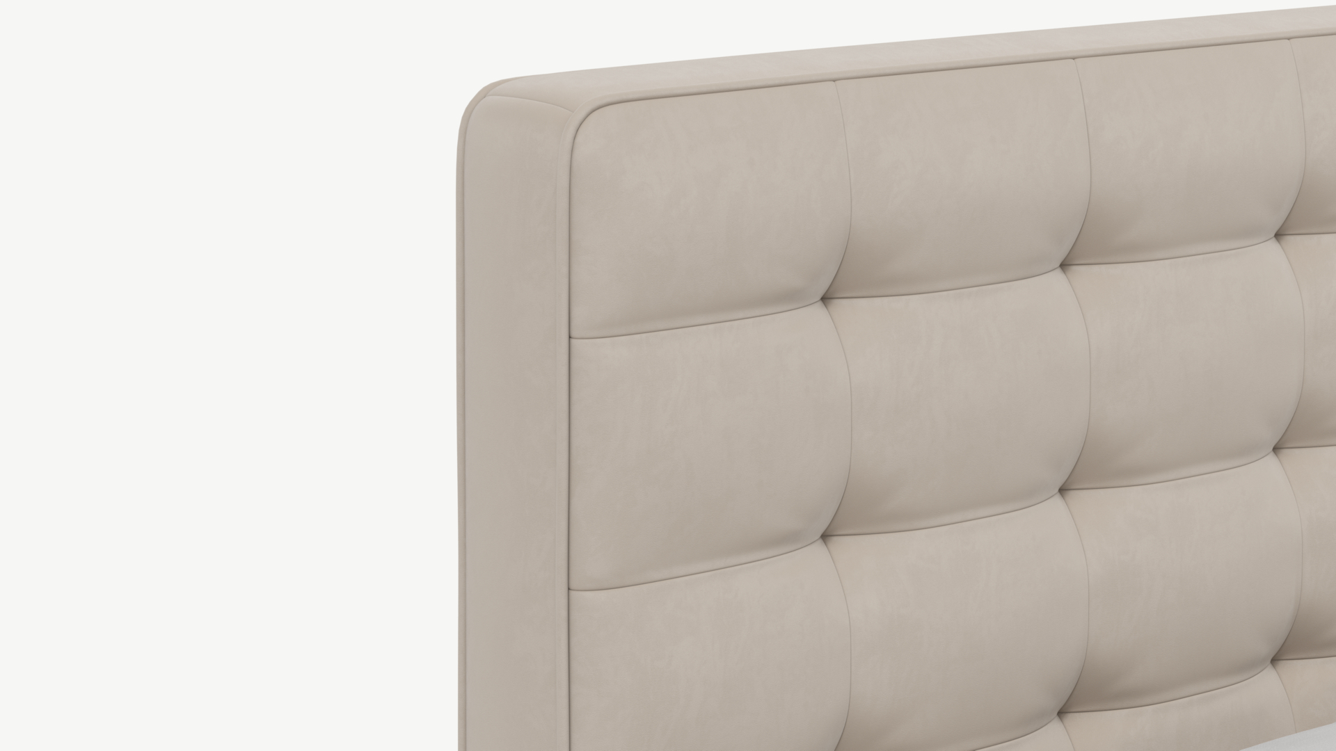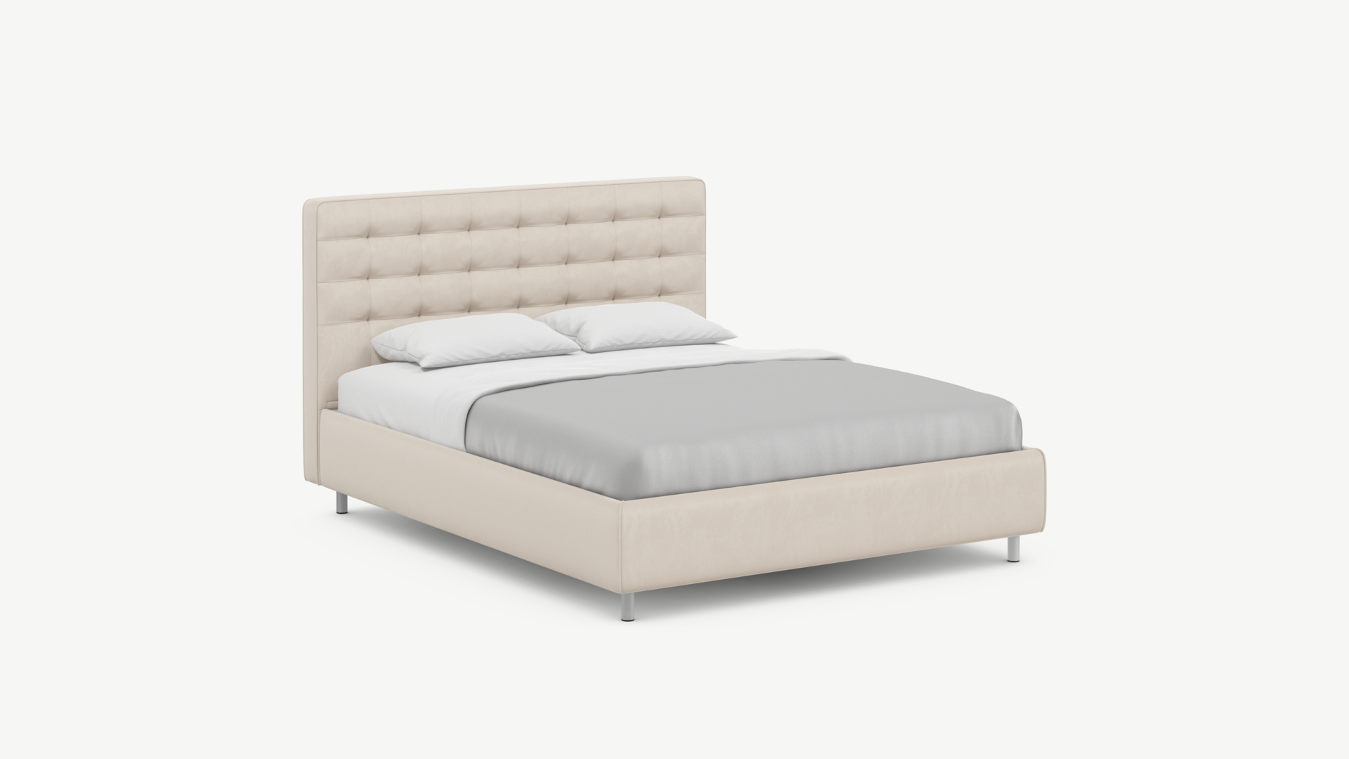 Оформите образ кровати, выбирая обивочный материал, который подчеркнет звучание Вашей спальни и отразит Ваш вкус. Обратите внимание на однотонный гладкий велюр, который усиливает объемную фактуру стежки.